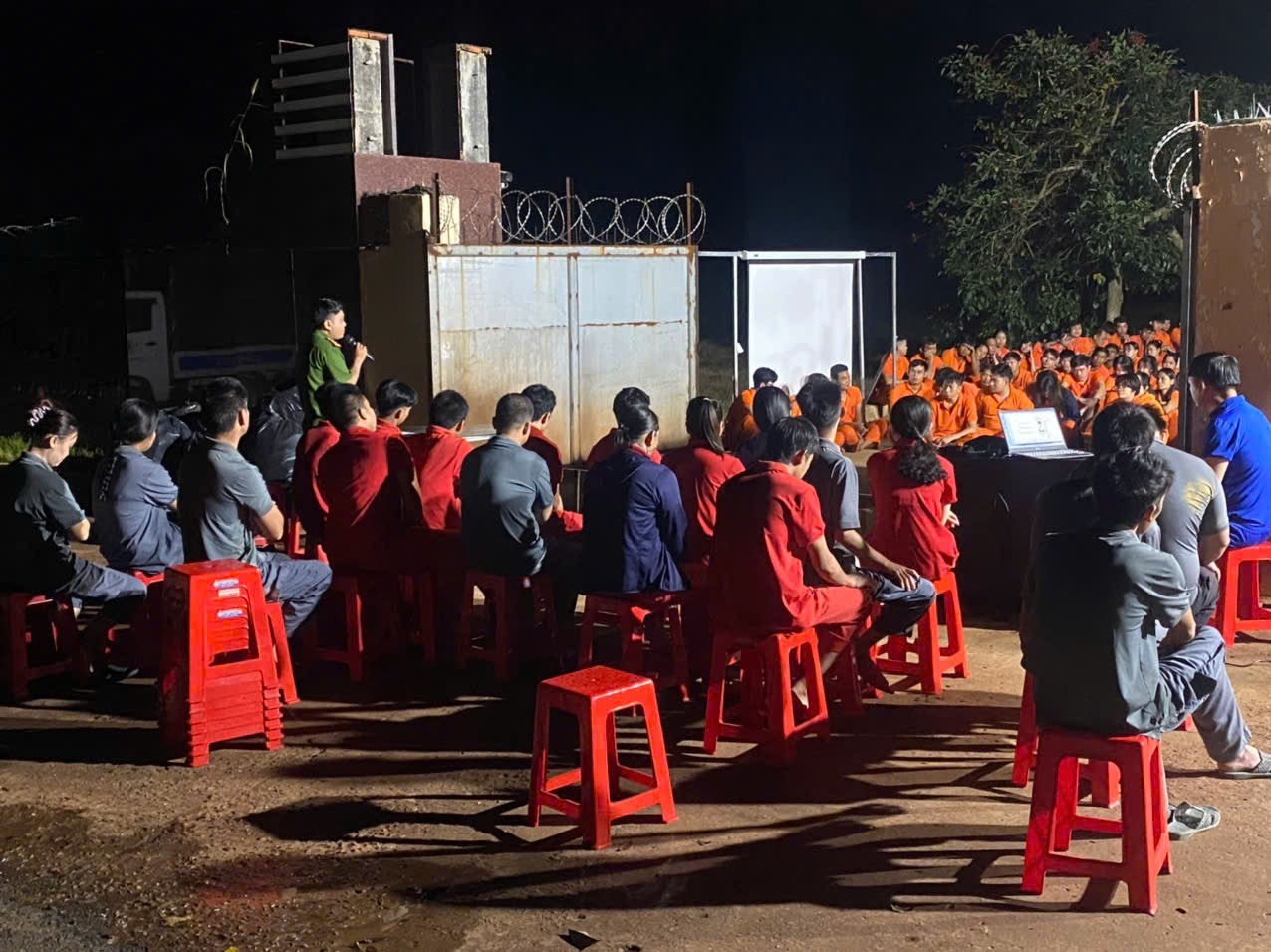 Xuất phát từ điều kiện đặc biệt của môi trường chăn nuôi khép kín, lực lượng Công an đã thiết kế mô hình tuyên truyền ngay tại khu vực cổng trại, sử dụng hệ thống máy chiếu, loa phát thanh và thiết bị truyền dẫn để chuyển tải hình ảnh, âm thanh trực tiếp vào bên trong khu vực sản xuất. Nhờ đó, dù công nhân làm việc tại nhiều khu vực khác nhau trong trại, vẫn có thể theo dõi đầy đủ nội dung tuyên truyền.