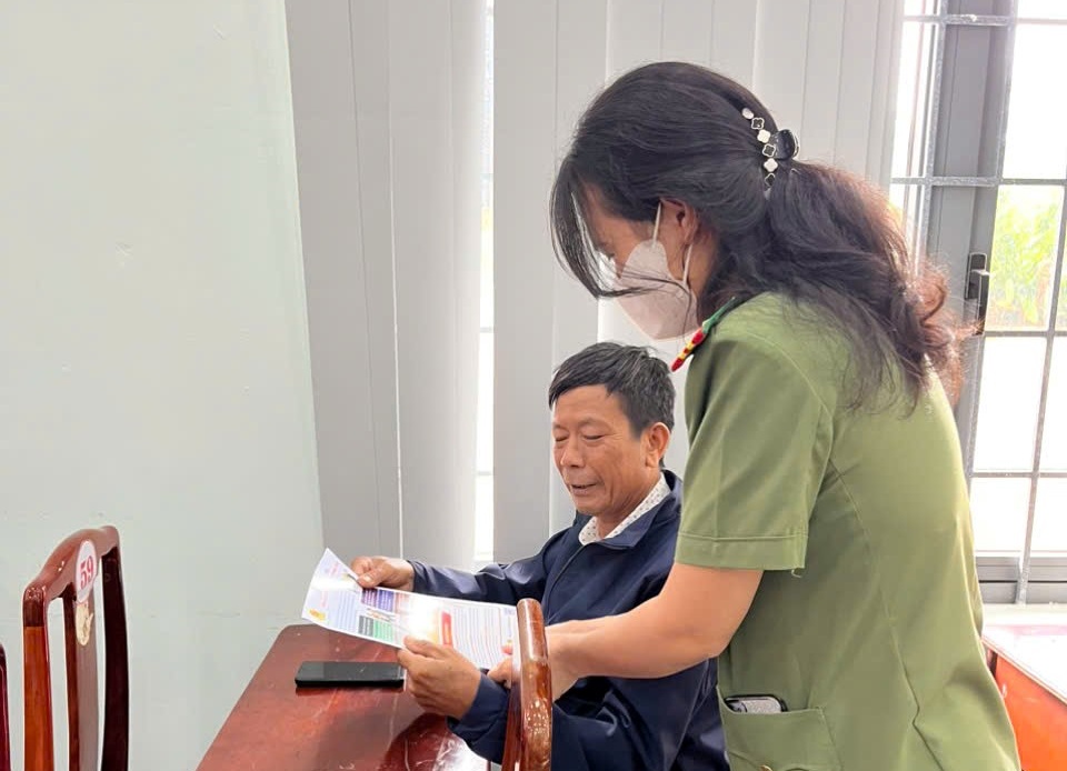Cán bộ Công an phường Đồng Xoài hướng dẫn tuyên truyền pháp luật