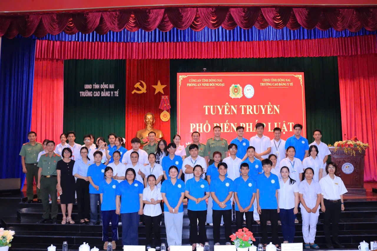 Lãnh đạo, Cán bộ phòng An ninh Đối ngoại và Ban Giám hiệu cùng học sinh, sinh viên Nhà trường tại buổi tuyên truyền