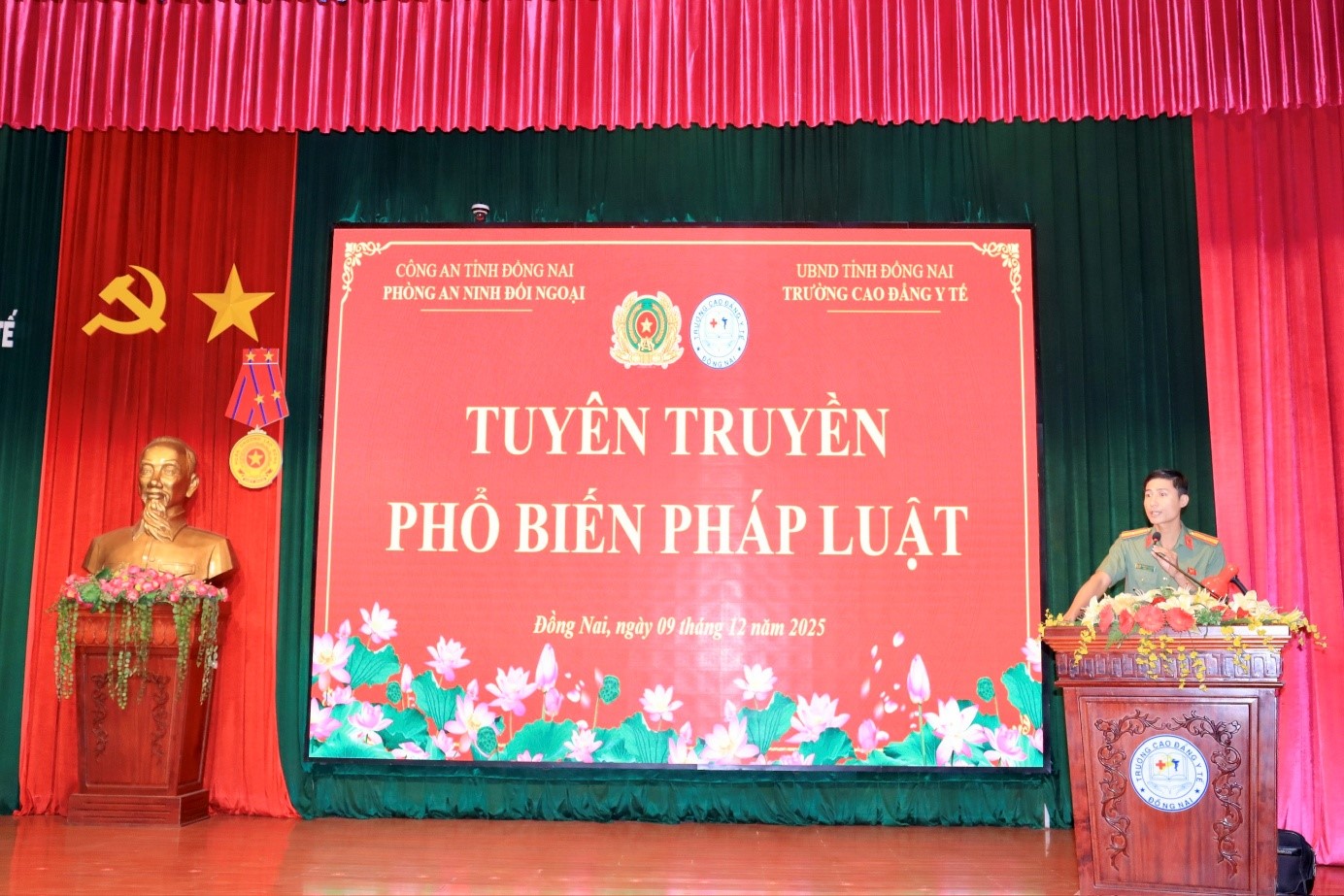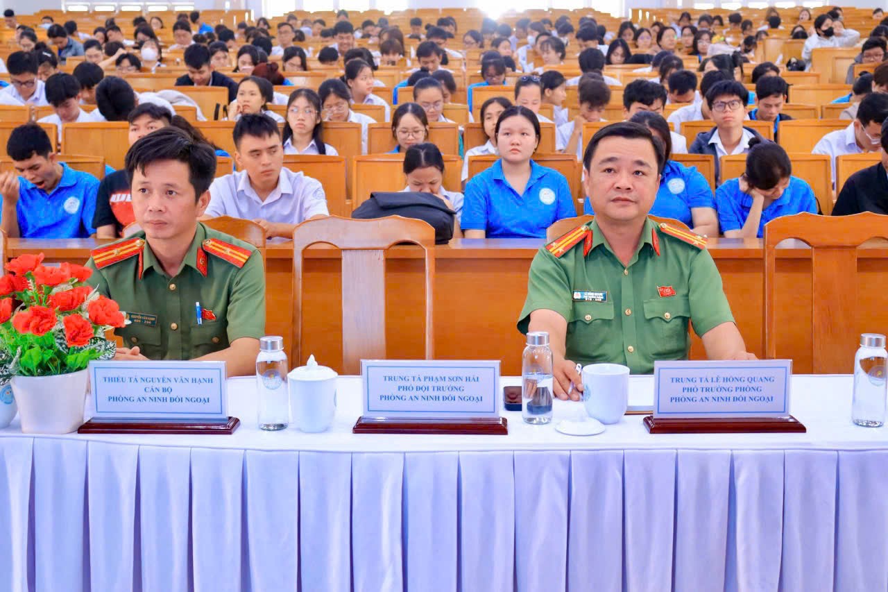 Tại buổi tuyên truyền, phổ biến pháp luật, đồng chí Thiếu tá Nguyễn Đại Hùng, cán bộ Phòng An ninh Đối ngoại đã truyền tải những nội dung cơ bản, cần thiết và những điểm lưu ý về hoạt động hợp tác giáo dục trên địa bàn tỉnh, tham gia các chương trình đào tạo tại nước ngoài, nhận diện các dấu hiệu và phòng ngừa hoạt động tội phạm lợi dụng học sinh, sinh viên tiến hành các hoạt động vi phạm pháp luật Việt Nam (tội phạm mạng, tuyên truyền, xuyên tạc các chủ trương, chính sách của Đảng, Nhà nước, chủ quyền Biển đảo...). Qua đó, nhằm nâng cao ý thức, trách nhiệm, nghĩa vụ của học sinh, sinh viên tham gia bảo vệ An ninh quốc gia, bảo đảm trật tự, an toàn xã hội trên địa bàn tỉnh.