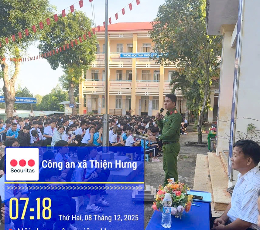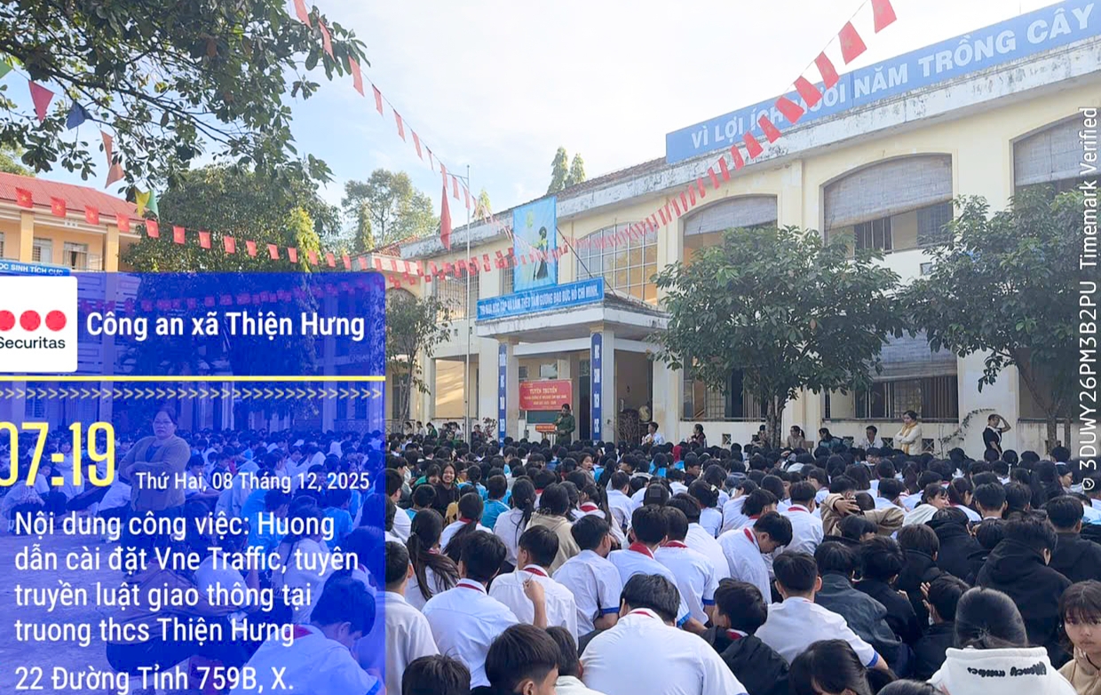 Ngày 8/12/2025, tại Trường Trung học cơ sở (THCS) Bù Đốp, xã Thiện Hưng, tỉnh Đồng Nai, Công an xã phối hợp với Ban Giám hiệu tổ chức buổi tuyên truyền chuyên đề về trật tự an toàn giao thông và hướng dẫn cài đặt ứng dụng VNe Traffic cho giáo viên và học sinh nhà trường.
