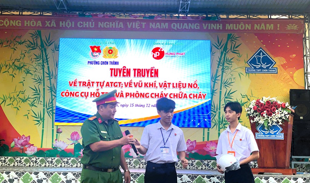 Cuối buổi tuyên truyền, học sinh được tham gia trả lời các câu hỏi tình huống gắn với thực tế đời sống hằng ngày nhằm củng cố kiến thức đã được truyền đạt; nhiều em tích cực tham gia giao lưu và được Ban tổ chức trao tặng mũ bảo hiểm.