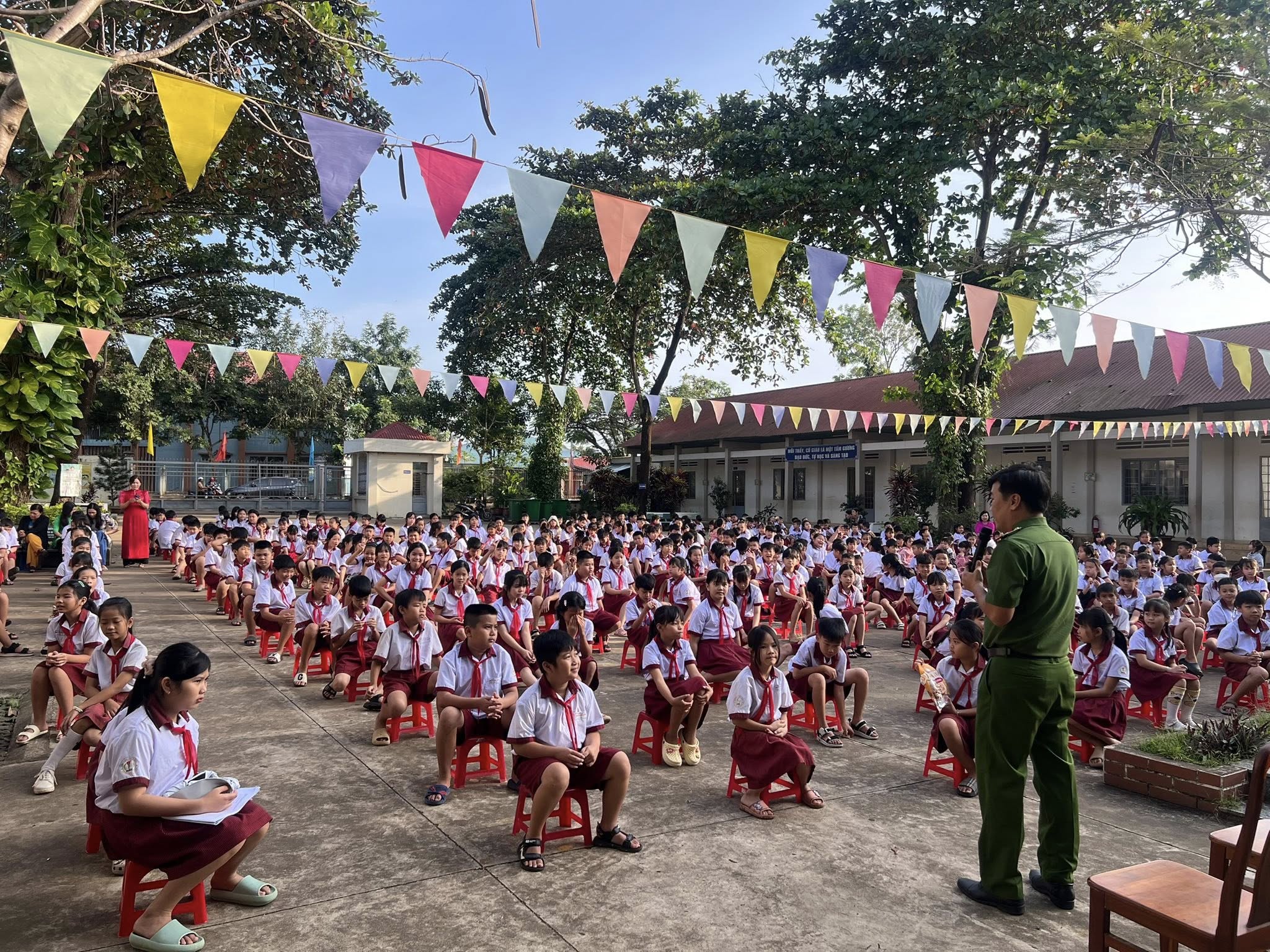 Tại buổi tuyên truyền, cán bộ Công an xã đã phổ biến những nội dung pháp luật thiết thực, phù hợp với lứa tuổi học sinh, tập trung vào các chuyên đề như: Pháp luật về trật tự an toàn giao thông; phòng, chống bạo lực học đường; phòng, chống ma túy; phòng, chống sử dụng và đốt pháo nổ. Các nội dung được truyền đạt bằng hình thức sinh động, dễ hiểu, giúp các em học sinh tiếp thu hiệu quả và ghi nhớ lâu.