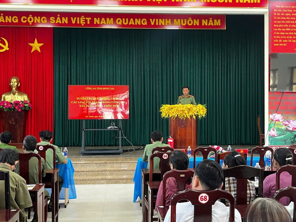 Thực hiện Kế hoạch về tuyên truyền phòng, chống các loại tội phạm và cao điểm tấn công, trấn áp tội phạm, Công an xã Lộc Thành phối hợp với Phòng Tham mưu, Phòng Cảnh sát hình sự, Phòng An ninh mạng và PCTP sử dụng công nghệ cao, Phòng Cảnh sát PCCC & CNCH - Công an tỉnh Đồng Nai tổ chức tuyên truyền pháp luật phòng, chống các loại tội phạm trong công tác xây dựng nông thôn mới với khoảng 250 người tham gia.