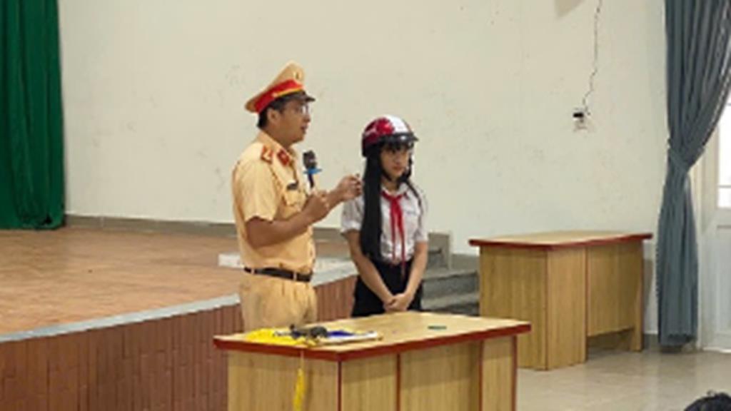 Đối với chuyên đề an toàn giao thông, các em học sinh được phổ biến những quy định cơ bản của pháp luật khi tham gia giao thông, đặc biệt là việc đội mũ bảo hiểm đúng quy cách, tuân thủ tín hiệu đèn giao thông, không điều khiển phương tiện khi chưa đủ điều kiện theo quy định. Nội dung tuyên truyền được lồng ghép với các câu hỏi tương tác, tình huống giả định, tạo không khí sôi nổi, giúp học sinh dễ tiếp thu và ghi nhớ.