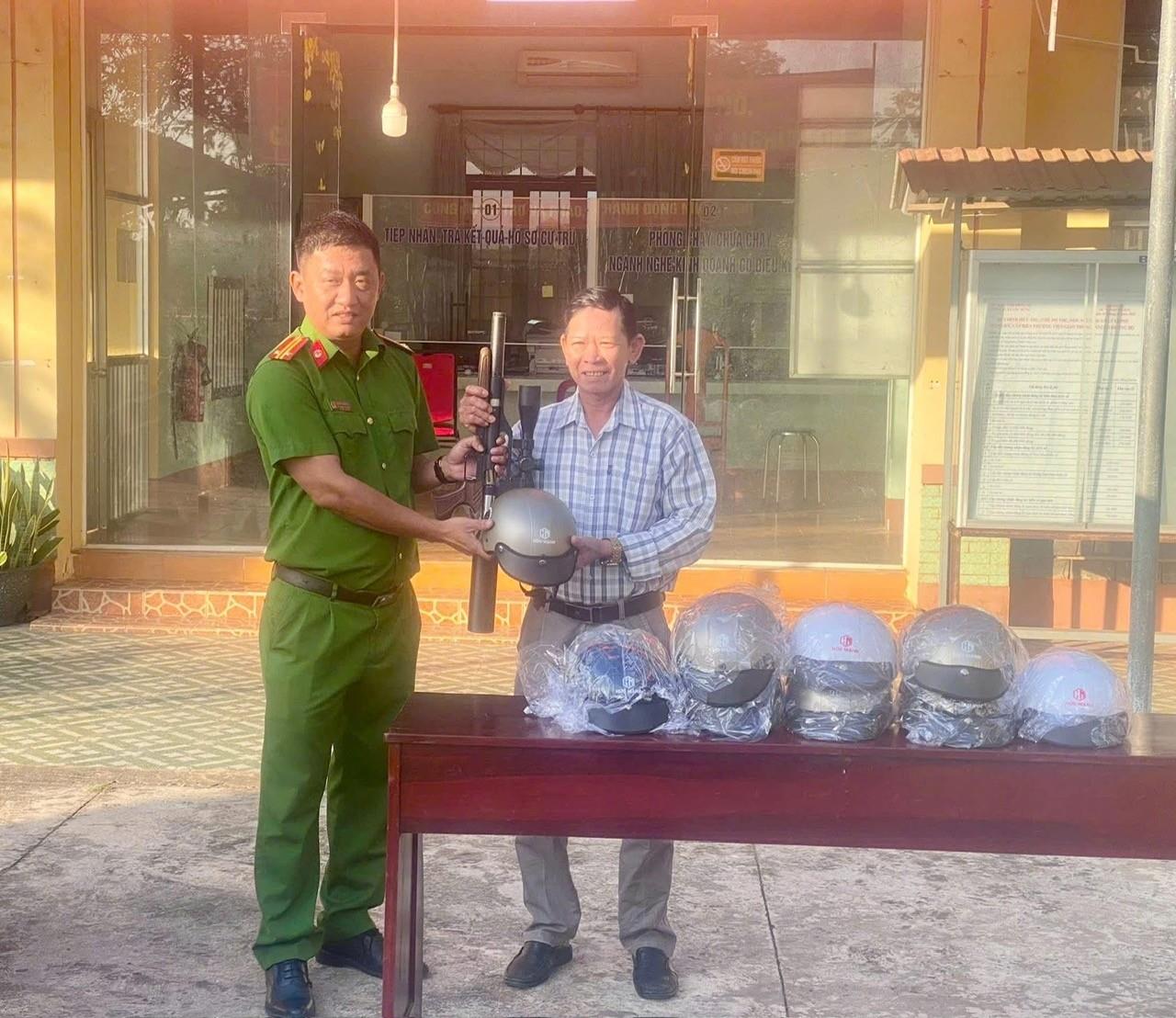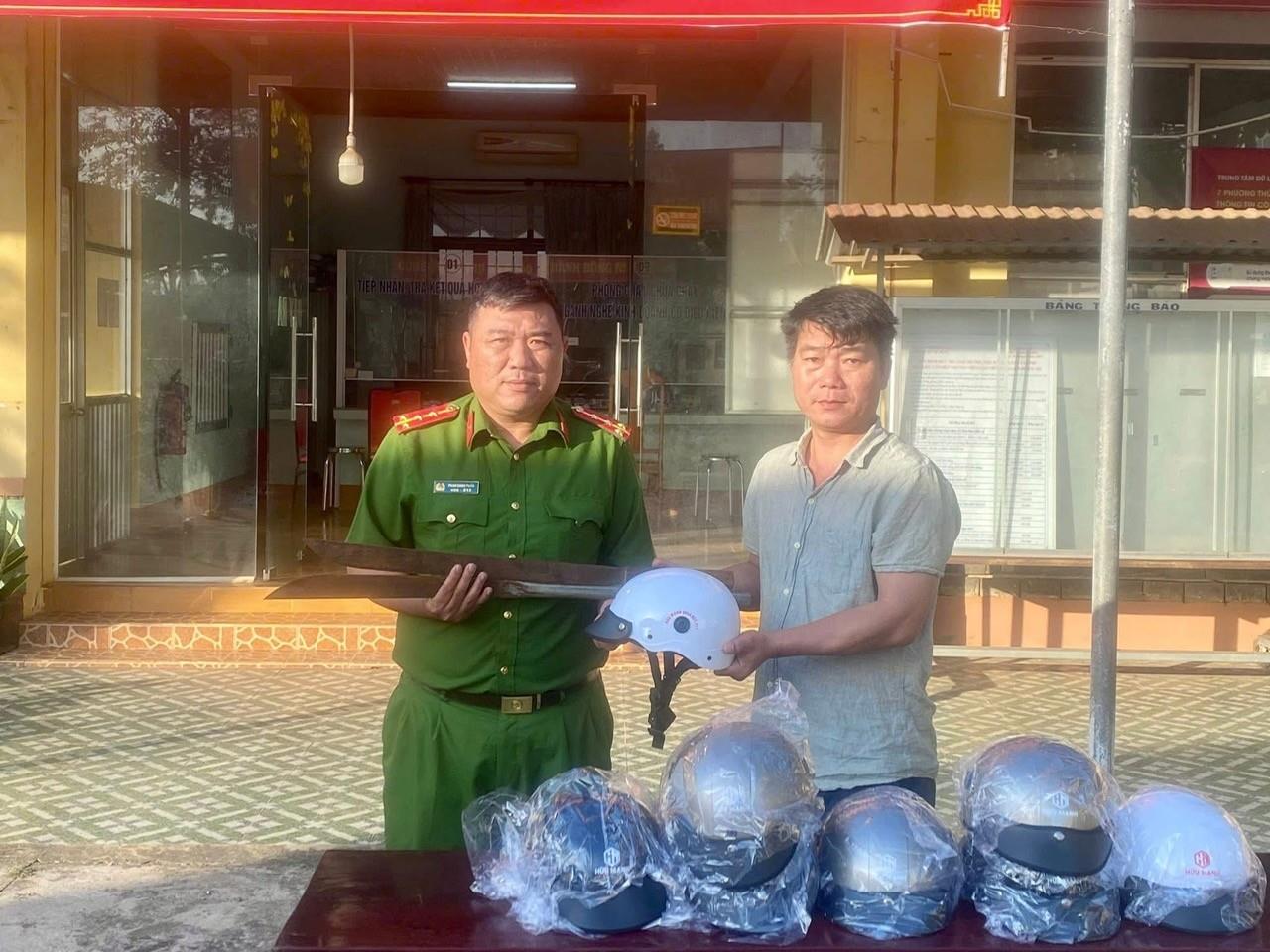 Qua tuyên truyền, người dân tự nguyện giao nộp vũ khí được nhận mũ bảo hiểm