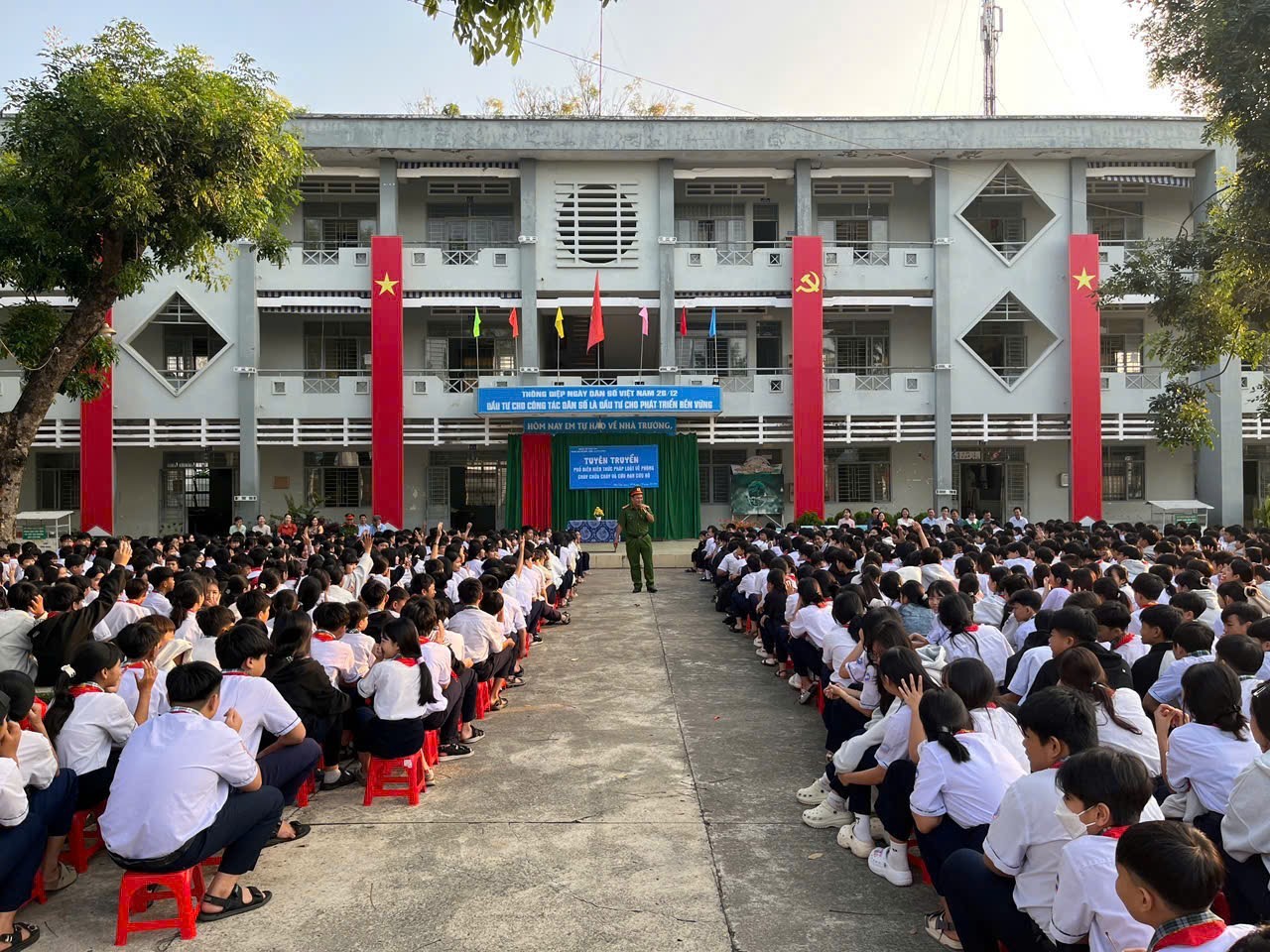 Quang cảnh buổi tuyên truyền tại Trường THCS Phú Bình