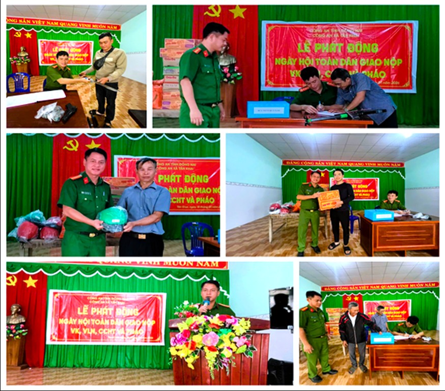 Bên cạnh công tác tuyên truyền, ngày 18/01/2026, Công an xã Tân Khai tổ chức “Ngày hội toàn dân giao nộp vũ khí, vật liệu nổ, công cụ hỗ trợ và pháo”. Qua vận động, Nhân dân đã tự giác giao nộp nhiều loại vũ khí, vật liệu nổ, công cụ hỗ trợ và pháo còn tồn trữ, góp phần phòng ngừa, ngăn chặn các nguy cơ phát sinh phức tạp về ANTT.
