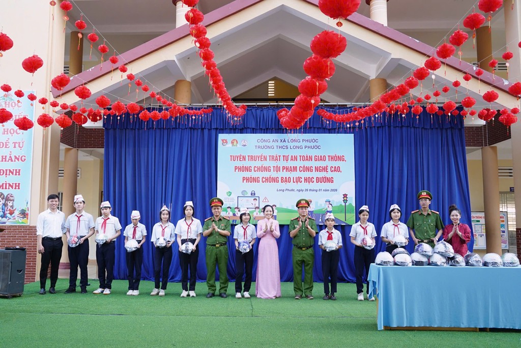 Sáng ngày 26/1, Công an xã Long Phước, tỉnh Đồng Nai đã tổ chức buổi tuyên truyền, phổ biến pháp luật về trật tự an toàn giao thông; phòng, chống tội phạm sử dụng công nghệ cao và phòng, chống bạo lực học đường cho cán bộ, giáo viên và học sinh Trường THCS Long Phước. Dịp này, Công an xã Long Phước đã trao tặng 50 nón bảo hiểm cho học sinh của nhà trường.