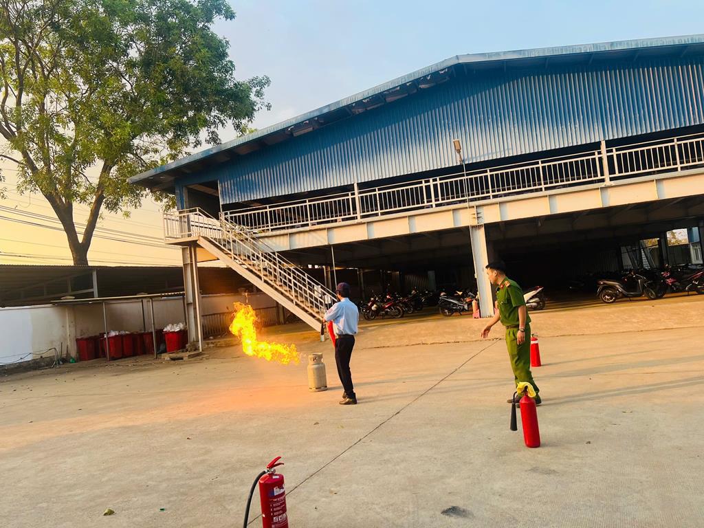Hướng dẫn Công nhân thực hành kỹ năng sử dụng bình chữa cháy dập tắt đám cháy