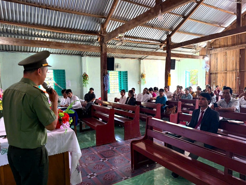 Tại buổi tuyên truyền, cán bộ Công an xã đã tập trung phổ biến các quy định của pháp luật về phòng cháy, chữa cháy; trật tự, an toàn giao thông; an ninh mạng; đồng thời phân tích rõ phương thức, thủ đoạn hoạt động của các loại tội phạm, nhất là tội phạm trộm cắp tài sản thường lợi dụng sơ hở của người dân tại khu dân cư, cơ sở tôn giáo để thực hiện hành vi phạm tội. Qua đó, giúp bà con nâng cao ý thức cảnh giác, chủ động phòng ngừa, tự bảo vệ tài sản và bảo đảm an toàn cho bản thân, gia đình.