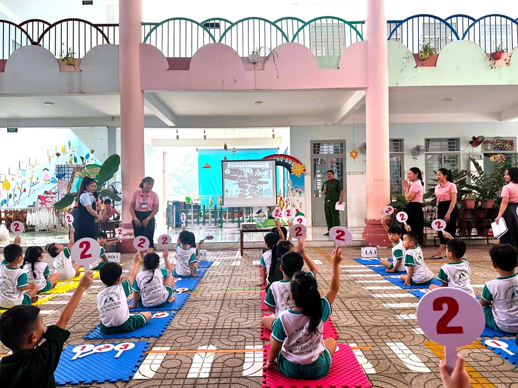 Hội thi “Tôi yêu Việt Nam” là hoạt động thiết thực, thể hiện sự phối hợp chặt chẽ giữa nhà trường và lực lượng Công an trong công tác tuyên truyền, giáo dục pháp luật cho trẻ em; qua đó góp phần xây dựng môi trường giáo dục an toàn, thân thiện, hướng tới mục tiêu giảm thiểu tai nạn giao thông, bảo đảm trật tự an toàn xã hội ngay từ cơ sở. Hoạt động không chỉ mang ý nghĩa giáo dục sâu sắc đối với trẻ mầm non mà còn lan tỏa thông điệp về trách nhiệm của gia đình, nhà trường và toàn xã hội trong việc xây dựng văn hóa giao thông an toàn, vì tương lai của thế hệ trẻ Việt Nam.