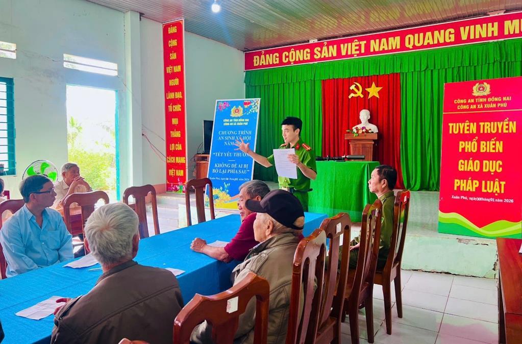 Sáng ngày 30/01/2026, tại Nhà văn hoá ấp Tây Minh, xã Xuân Phú, Công an xã Xuân Phú tổ chức tuyên truyền, phổ biến, giáo dục pháp luật về quy định về quản lý và sử dụng pháo đến hơn 300 hộ dân sinh sống tại ấp Tây Minh.  Cán bộ Công an xã tuyên truyền, phổ biến, giáo dục pháp luật về quy định về quản lý và sử dụng pháo Cán bộ Công an xã tuyên truyền, phổ biến, giáo dục pháp luật về quy định về quản lý và sử dụng pháo
