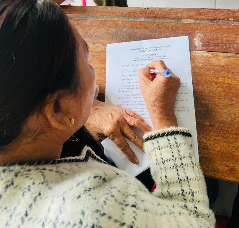 Qua đó, cán bộ Công an xã phối hợp cùng các Tổ nhân dân ấp Tây Minh vận động các hộ dân trên địa bàn lập bản cam kết không sản xuất, mua bán, tàng trữ, vận chuyển và đốt pháo nổ, pháo hoa nổ trái phép.