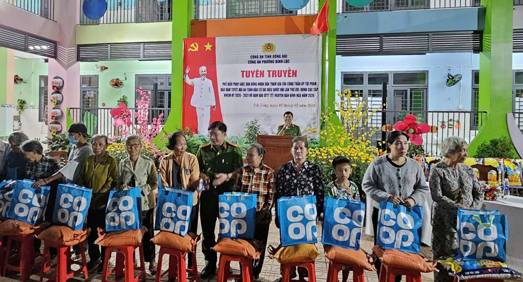 Nhân dịp này, Công an phường Bình Lộc đã trao tặng 100 phần quà cho các hộ dân có hoàn cảnh khó khăn trên địa bàn khu phố Núi Tung, thể hiện sự quan tâm, sẻ chia của lực lượng Công an đối với Nhân dân, góp phần củng cố mối quan hệ gắn bó, đoàn kết giữa lực lượng Công an và Nhân dân.