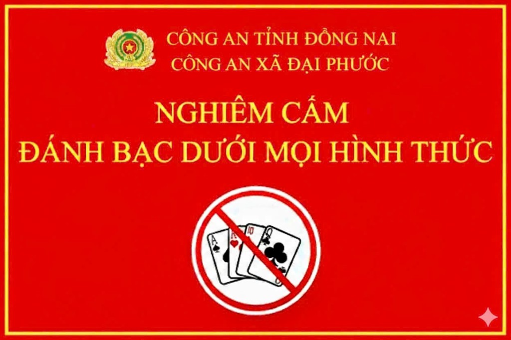 Công an xã Đại Phước (tỉnh Đồng Nai) cảnh báo: mọi hành vi đánh bạc dưới bất kỳ hình thức nào như xóc đĩa, bài tây ăn tiền, lô đề, cá độ bóng đá, đá gà, đánh bạc qua mạng… đều vi phạm pháp luật và có thể bị xử phạt hành chính hoặc truy cứu trách nhiệm hình sự, dù với số tiền nhỏ hay núp bóng trò chơi dân gian..