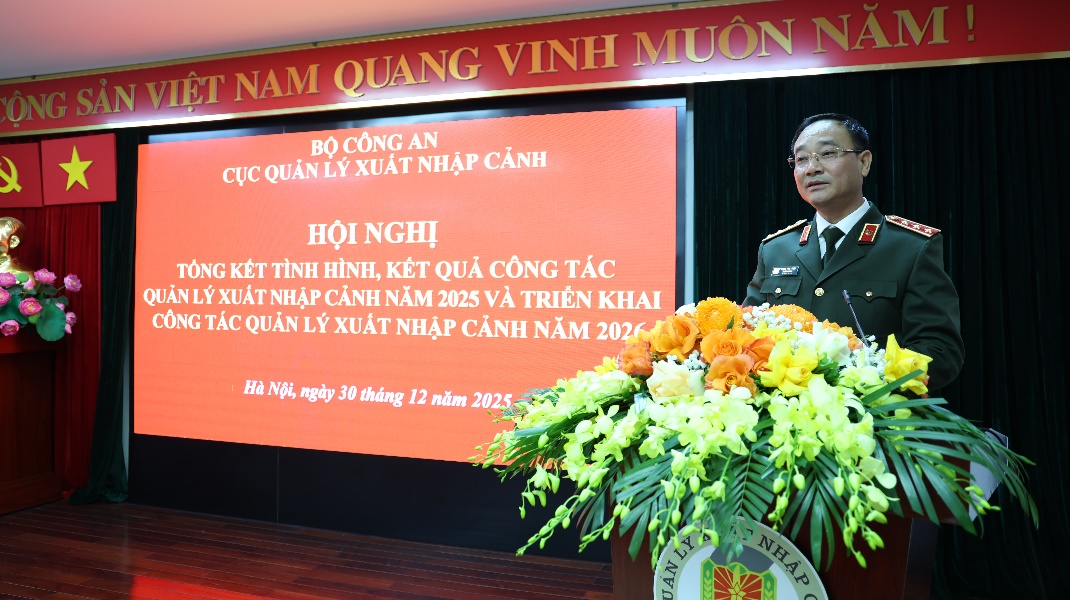 Thứ trưởng Phạm Thế Tùng phát biểu tại Hội nghị Tổng kết công tác năm 2025 và triển khai công tác năm 2026 của Cục Quản lý xuất nhập cảnh