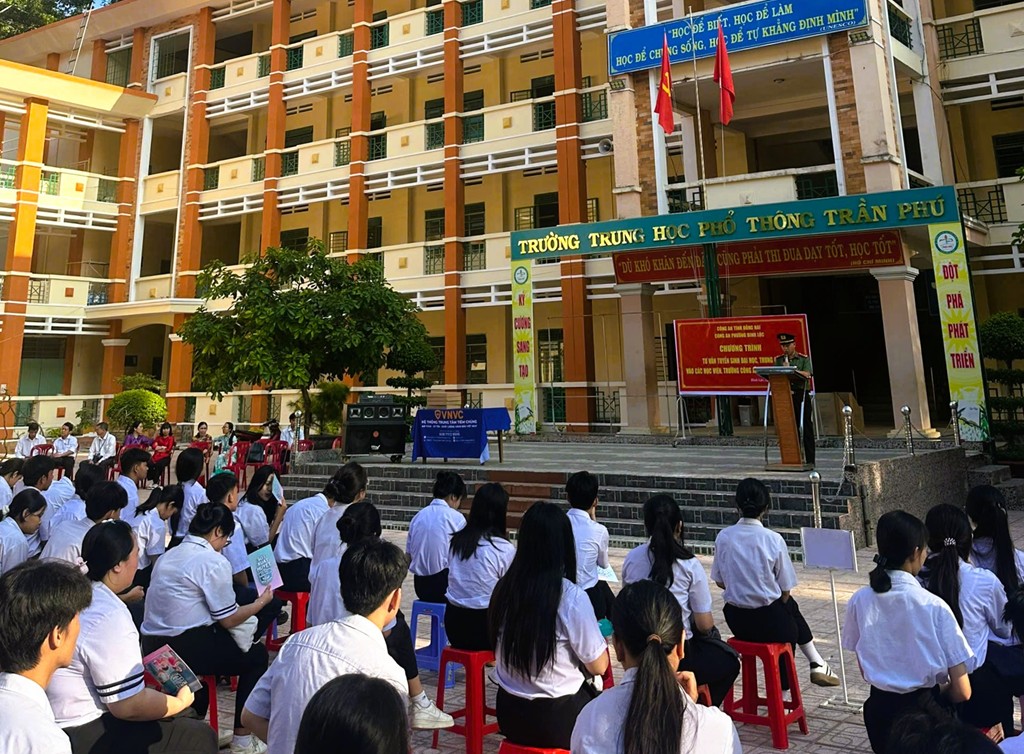 Trong khuôn khổ chương trình, học sinh còn được trực tiếp trao đổi, đặt câu hỏi về những nội dung quan tâm liên quan đến ngành học, môi trường đào tạo, cơ hội phát triển trong lực lượng Công an nhân dân. Các thắc mắc đã được cán bộ Công an giải đáp tận tình, góp phần giúp học sinh có thêm thông tin, cơ sở để lựa chọn ngành nghề phù hợp với năng lực và nguyện vọng của bản thân.
