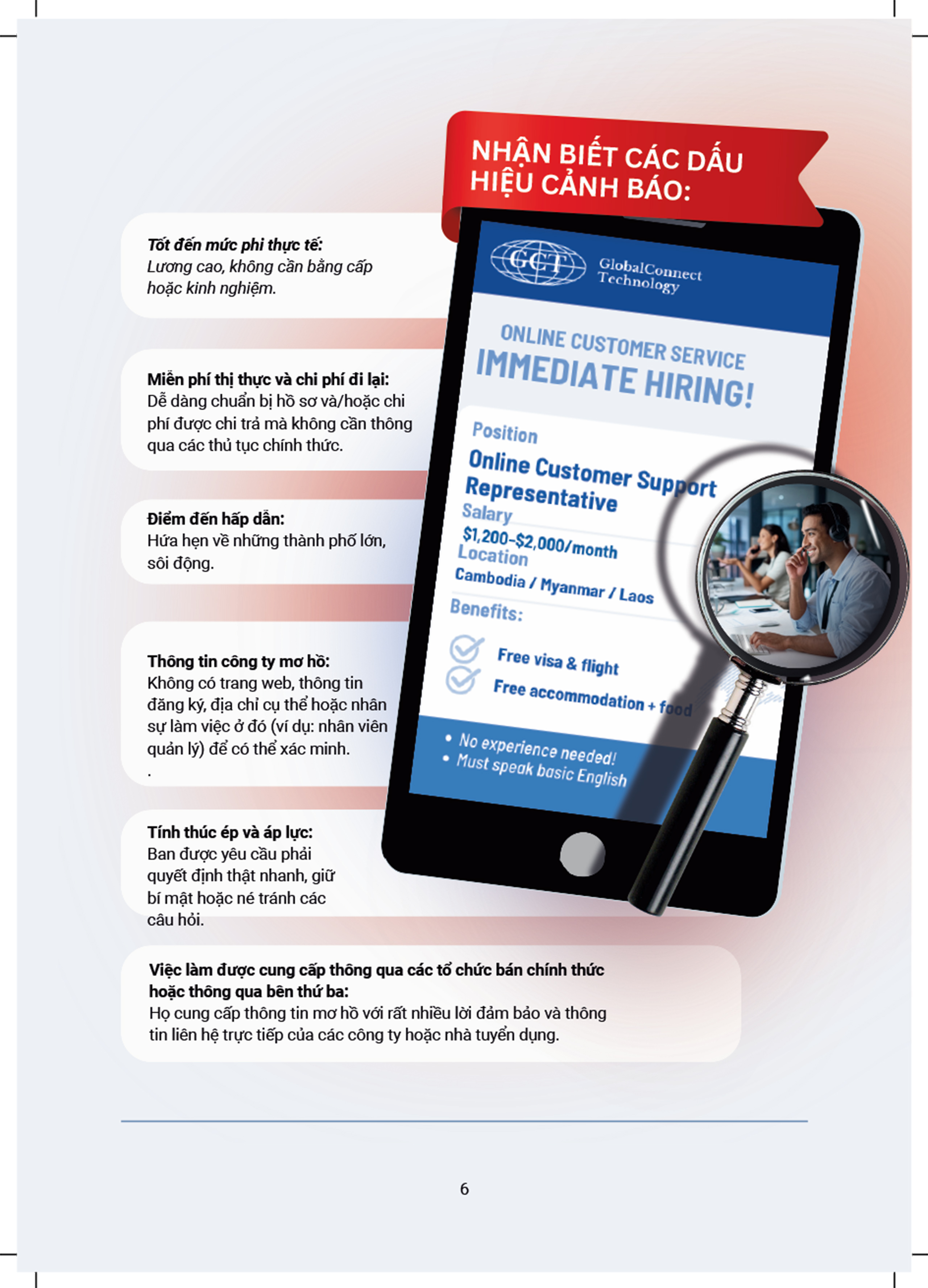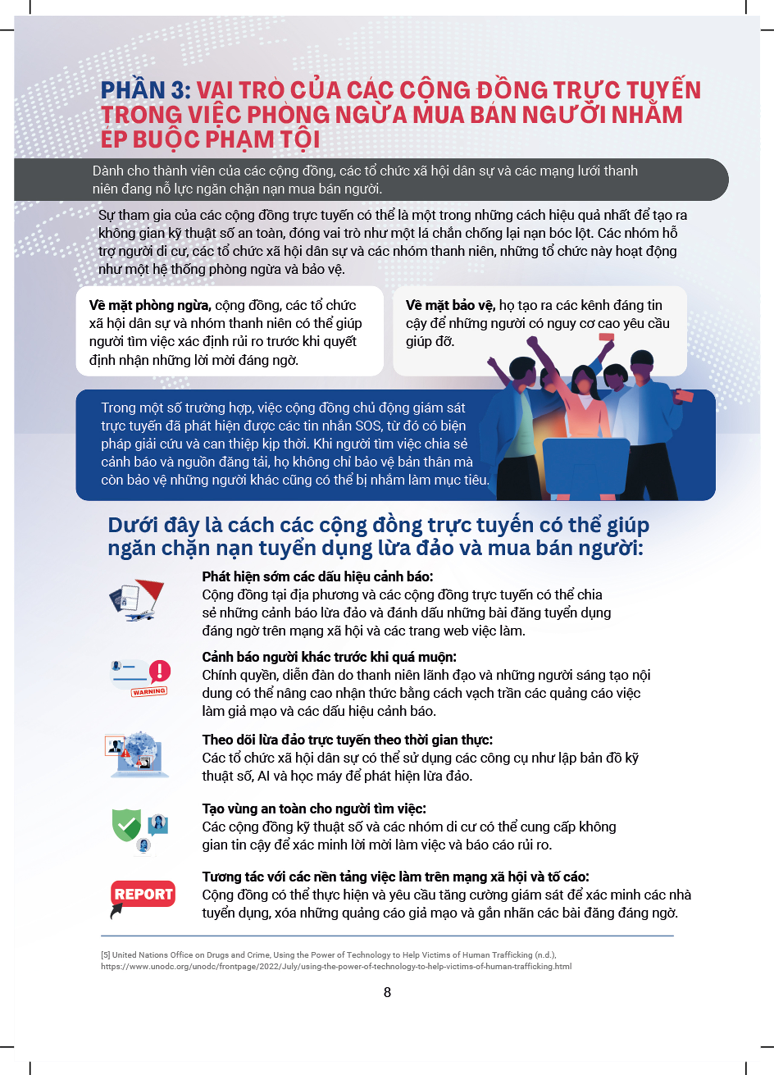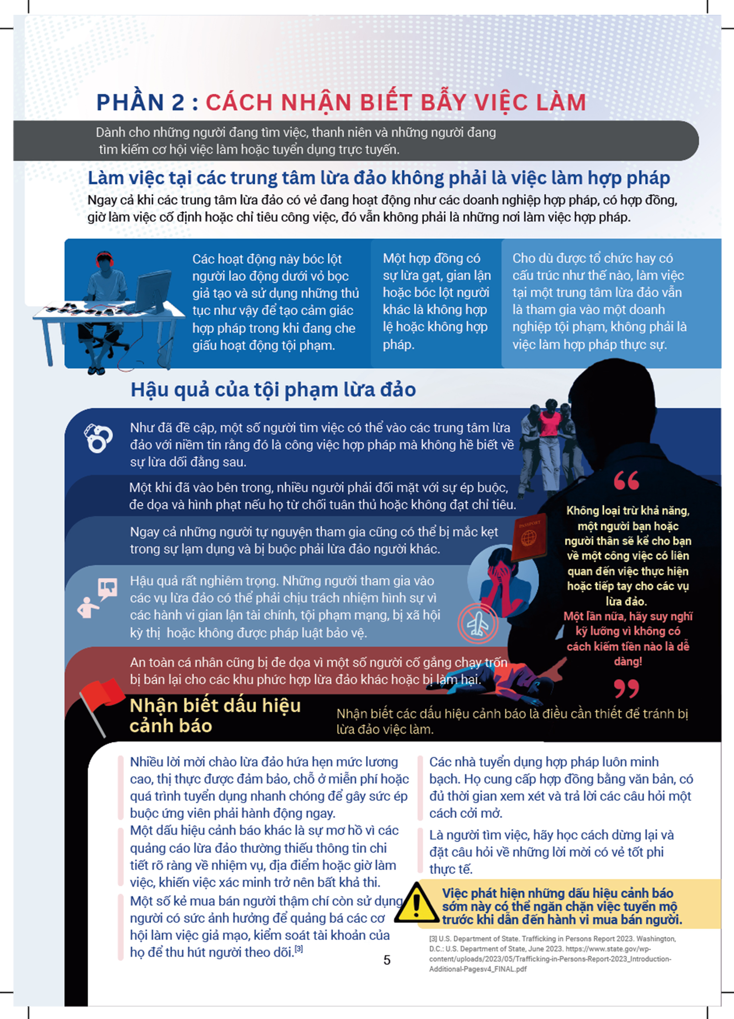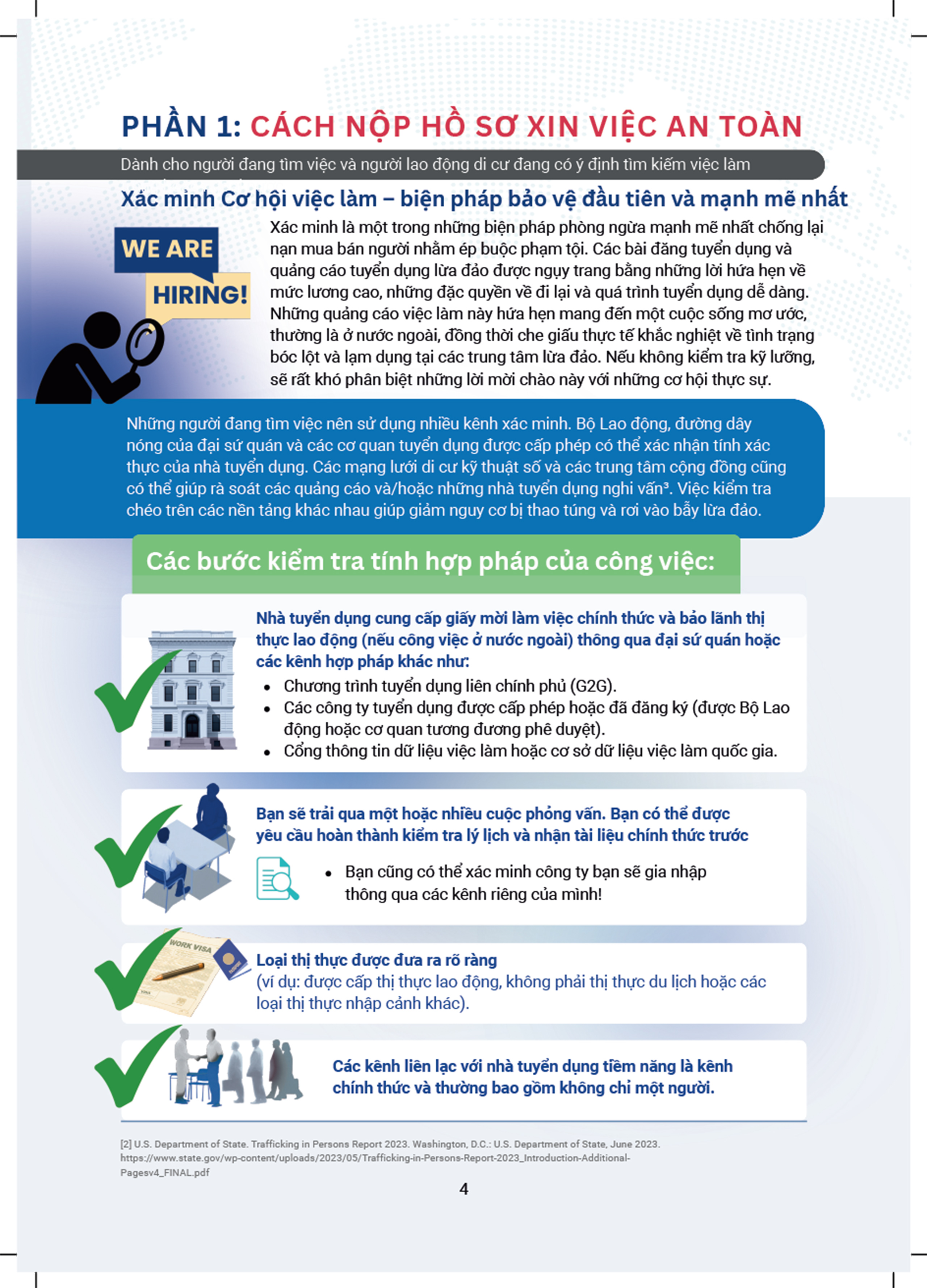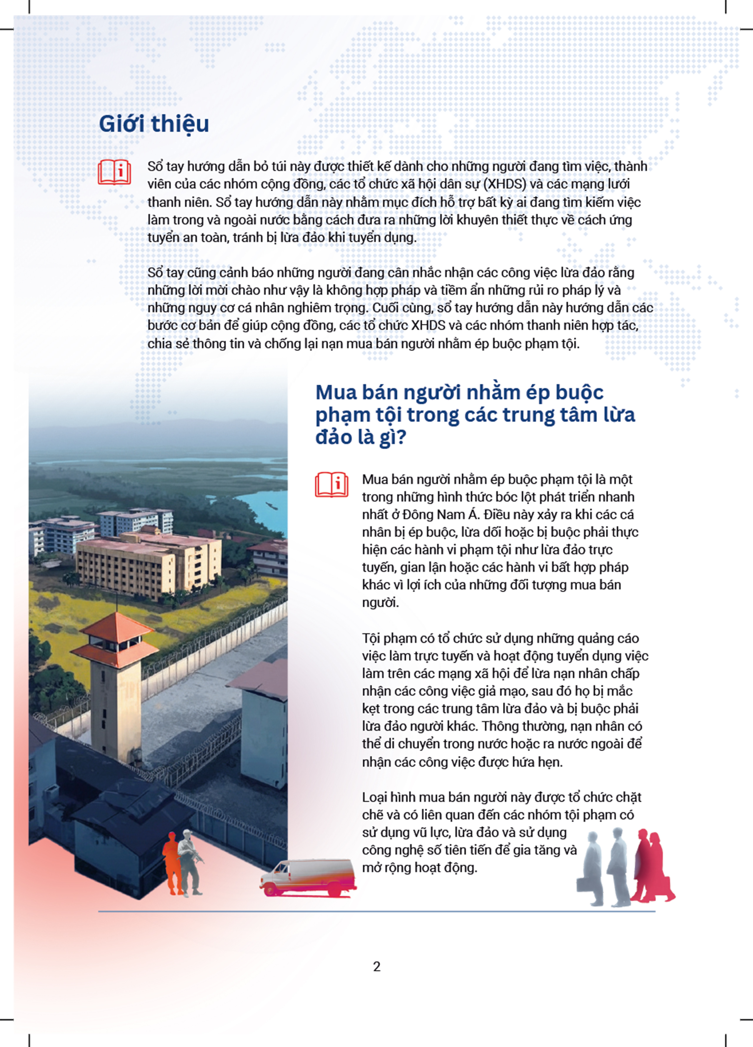 Sổ tay hướng dẫn bỏ túi này được thiết kế dành cho những người đang tìm việc, thành viên của các nhóm cộng đồng, các tổ chức xã hội dân sự (XHDS) và các mạng lưới thanh niên. Sổ tay hỗ trợ bất kỳ ai đang tìm kiếm việc làm trong và ngoài nước bằng cách đưa ra những lời khuyên thiết thực về cách ứng tuyển an toàn, tránh bị lừa đảo khi tuyển dụng.
