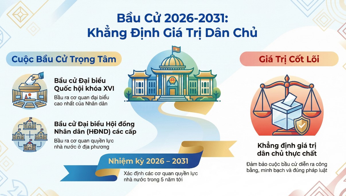 Cuộc bầu cử đại biểu Quốc hội khóa XVI và đại biểu Hội đồng nhân dân các cấp nhiệm kỳ 2026 - 2031 là sự kiện trọng đại thể hiện quyền làm chủ của Nhân dân, góp phần xây dựng Nhà nước pháp quyền xã hội chủ nghĩa Việt Nam vững mạnh. Trước những luận điệu sai trái, xuyên tạc, bôi nhọ, mỗi người dân hãy nâng cao cảnh giác, tỉnh táo nhận diện và kiên quyết đấu tranh phản bác các thông tin giả mạo, các luận điệu xuyên tạc nhằm bảo vệ sự thật, bảo vệ nền tảng tư tưởng của Đảng.