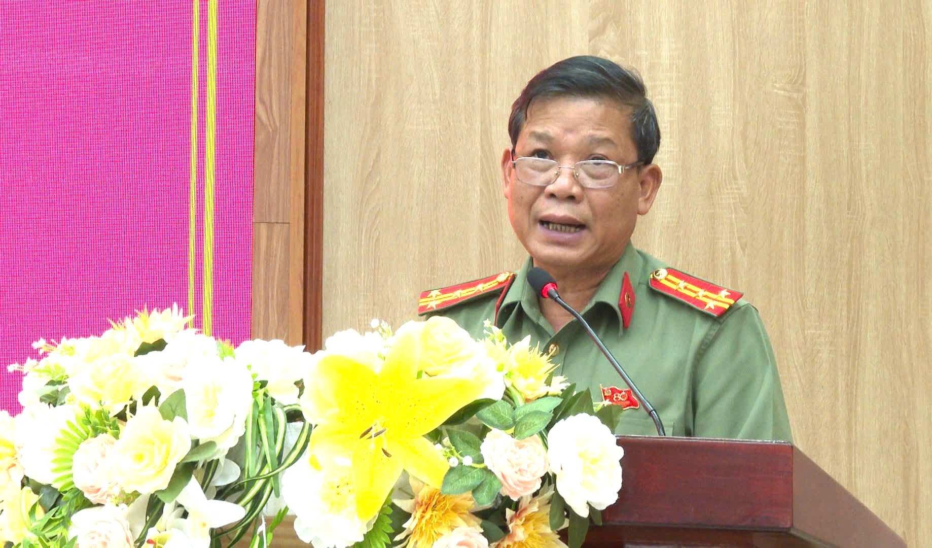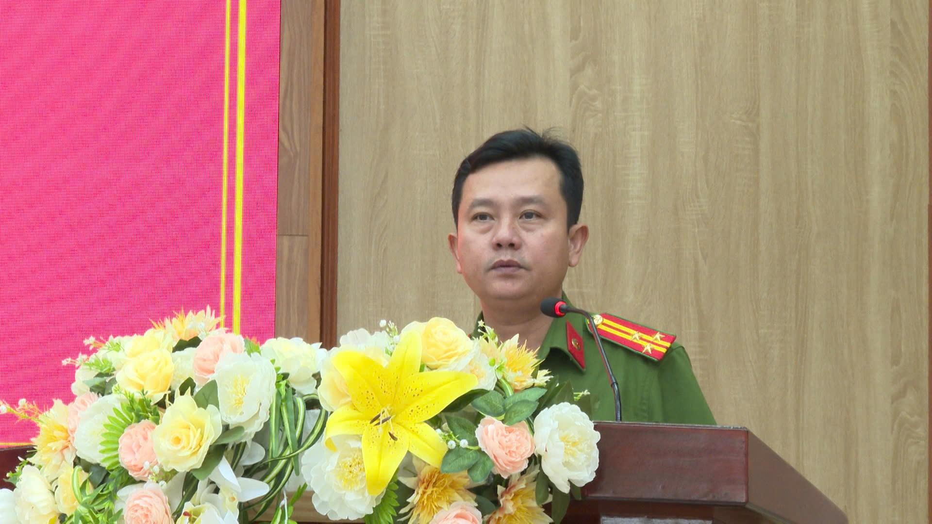 Đồng chí Phó Bí thư Đảng ủy - Phó Giám đốc Công an tỉnh phát biểu tại Hội nghị
