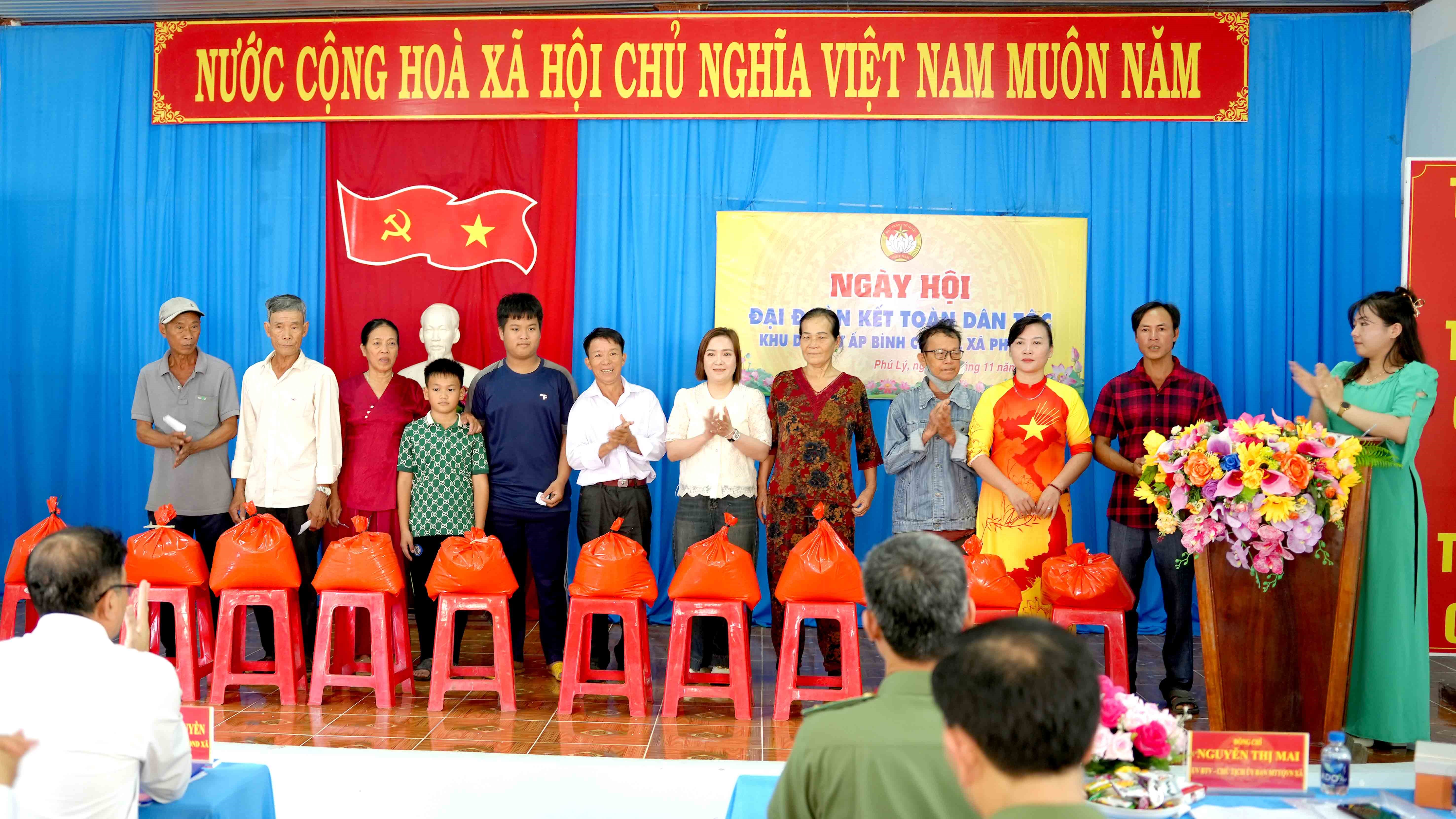 Chính quyền xã Phú Lý và ấp Bình Chánh trao tặng những phần quà và học bổng các hộ gia đình khó khăn và em học sinh vượt khó học giỏi.