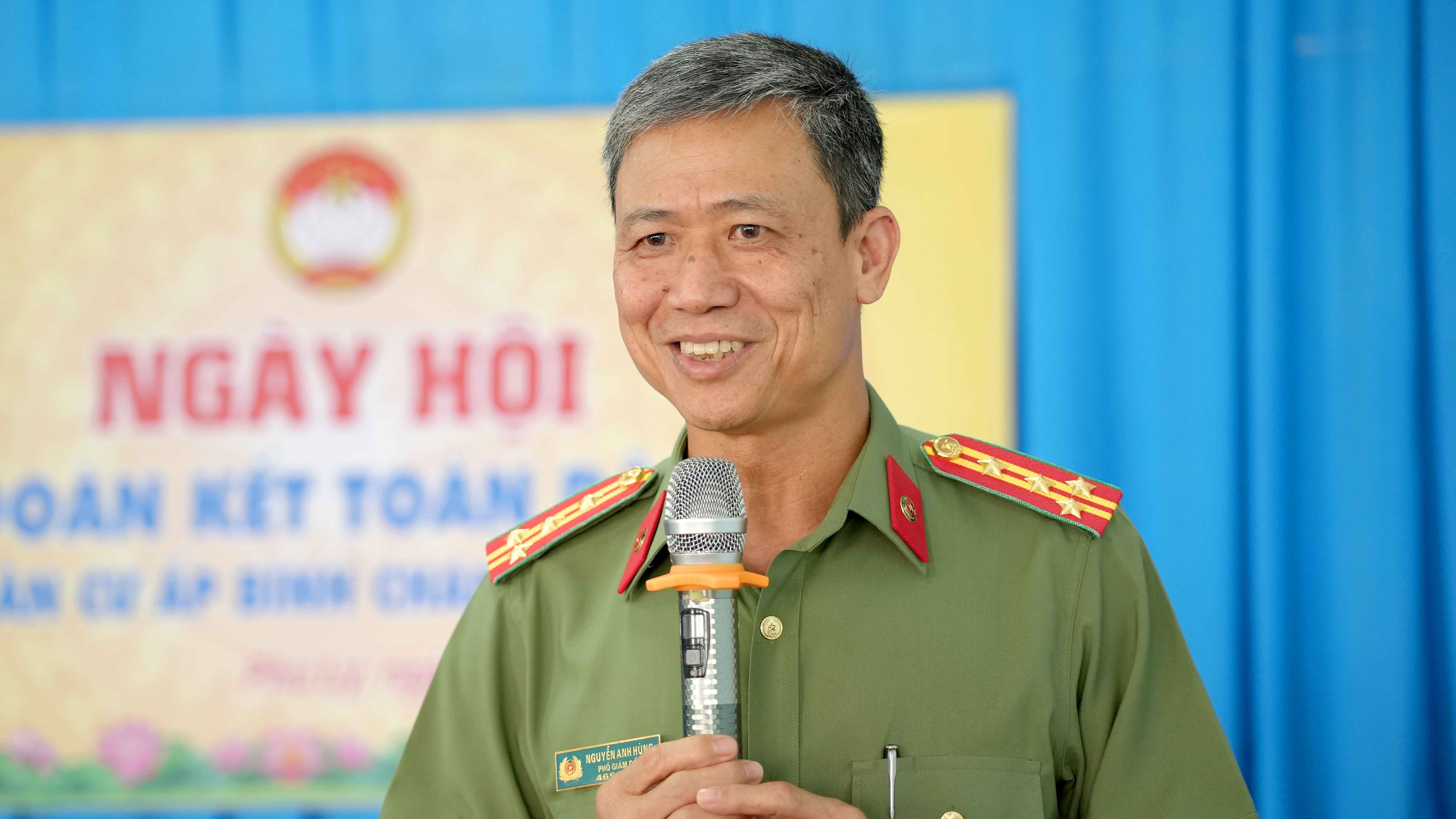 Đại tá Nguyễn Anh Hùng, Phó Giám đốc Công an tỉnh phát biểu tại buổi lễ