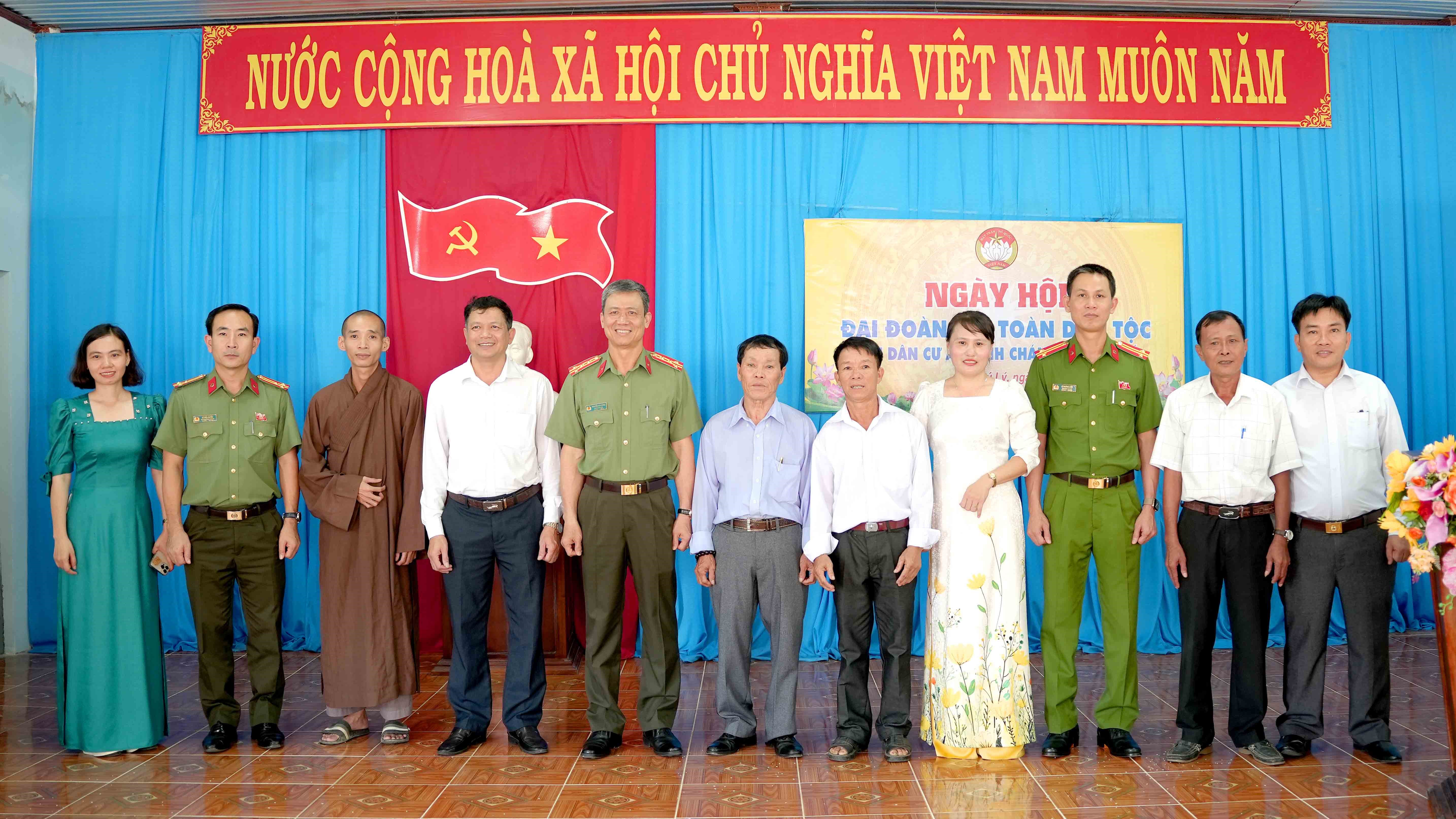 Đồng chí Đại tá Nguyễn Anh Hùng, Phó Giám đốc Công an tỉnh về dự Ngày hội với bà con nhân dân địa phương. Về phía lãnh đạo xã có đồng chí Nguyễn Thanh Tuyền, Bí thư Đảng ủy, Chủ tịch HĐND xã; các đồng chí đại diện cho chính quyền và các ngành, đoàn thể của xã; đại diện cấp ủy và Ban công tác mặt trận 8 ấp trên địa bàn xã cùng hàng trăm người dân địa phương đã về tham dự Ngày hội.