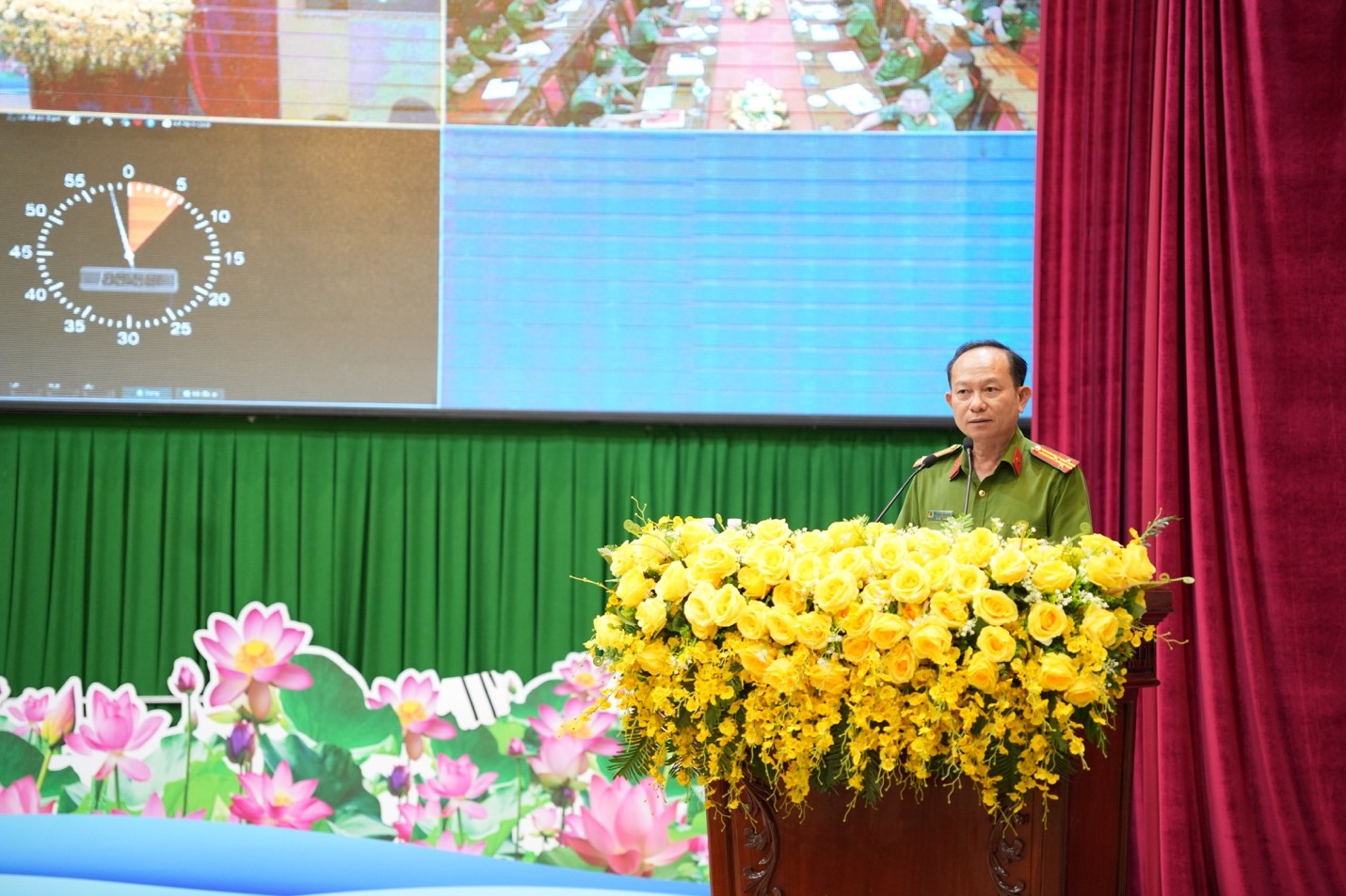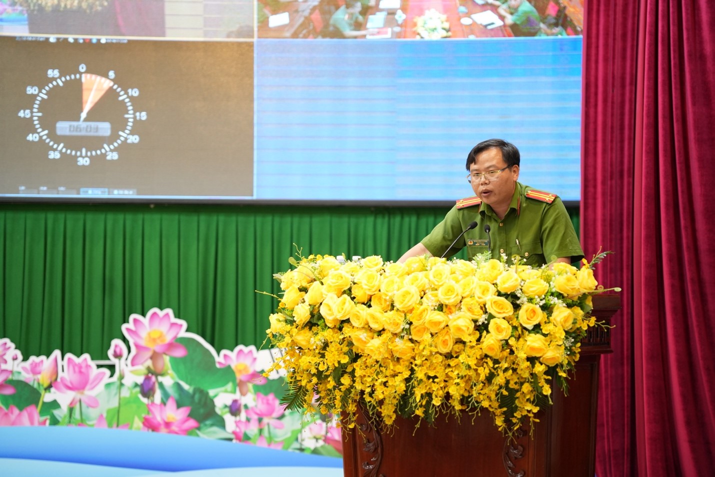 Đại tá Lâm Văn Long, Phó Giám đốc Công an tỉnh điều hành phần tham luận