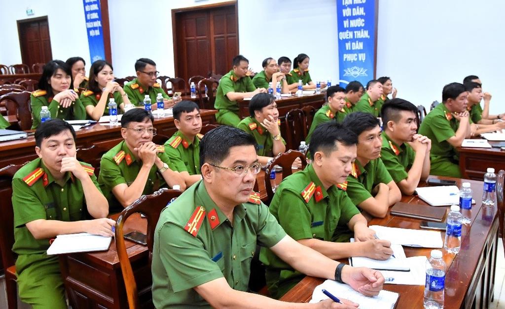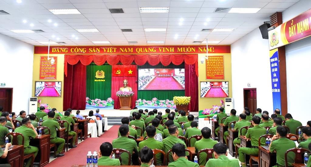 Lãnh đạo, chỉ huy các đơn vị, địa phương dự Hội nghị tại điểm cầu Công an tỉnh