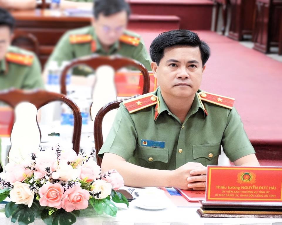 Thiếu tướng Nguyễn Đức Hải - Giám đốc Công an tỉnh chủ trì dự Hội nghị tại điểm cầu Công an tỉnh