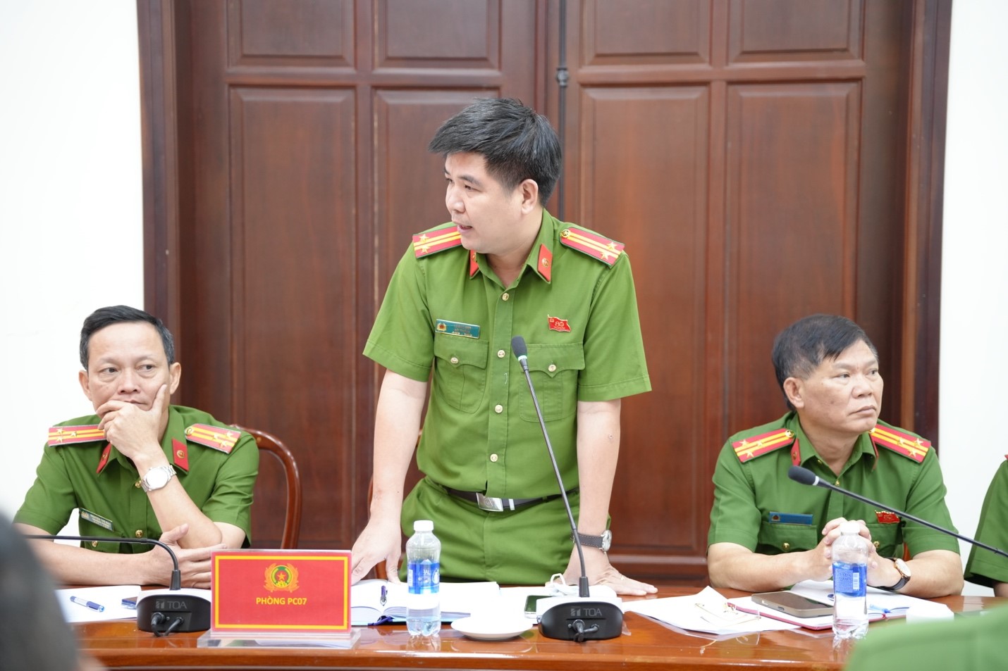 Đại tá Trần Anh Sơn, Phó Giám đốc Công an tỉnh phát biểu chỉ đạo buổi làm việc