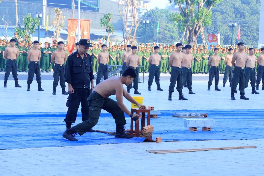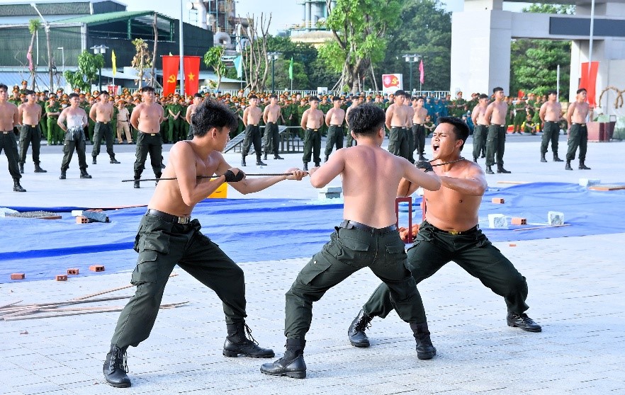 Mở đầu buổi Lễ, lực lượng Cảnh sát cơ động biểu diễn kỹ thuật, chiến thuật, võ thuật Công an nhân dân, khả năng công phá, kỹ năng sử dụng thành thạo vũ khí, công cụ hỗ trợ, sử dụng cảnh khuyển, xử lý tình huống giả định tấn công, khống chế tội phạm, giải cứu con tin được dàn dựng sát với thực tế, công phu… thể hiện bản lĩnh, sức mạnh và khả năng sẵn sàng chiến đấu cao của lực lượng Công an tỉnh Đồng Nai.
