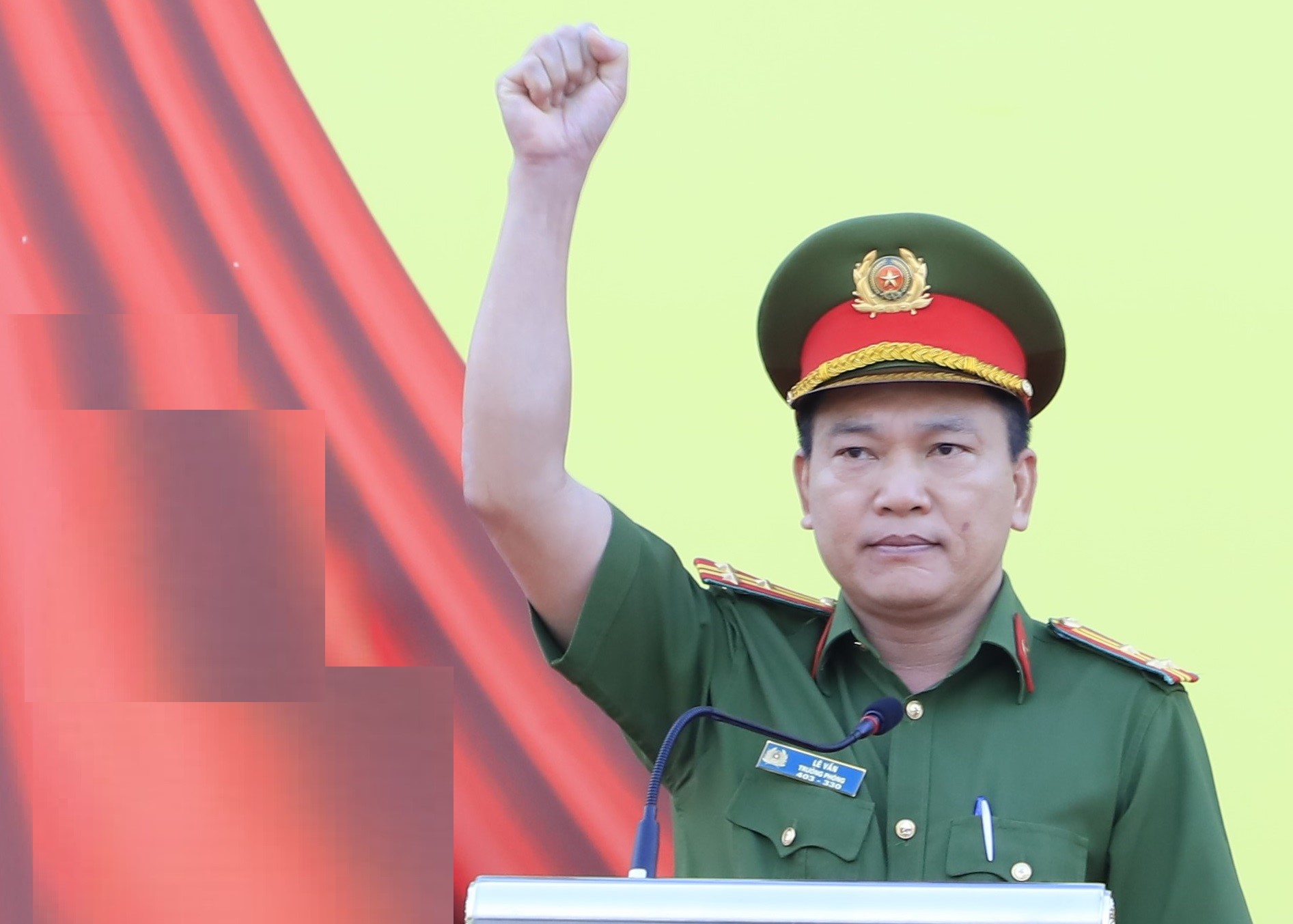 Thượng tá Lê Vấn - Trưởng Phòng Cảnh sát hình sự đại diện cho CBCS bày tỏ quyết tâm thực hiện thắng lợi cao điểm