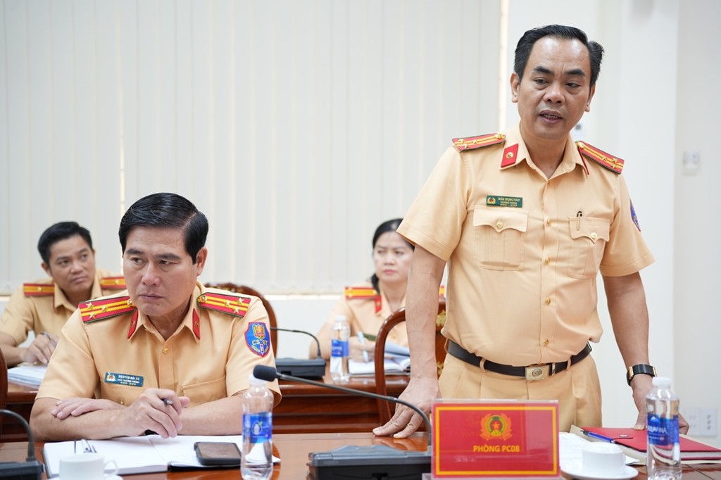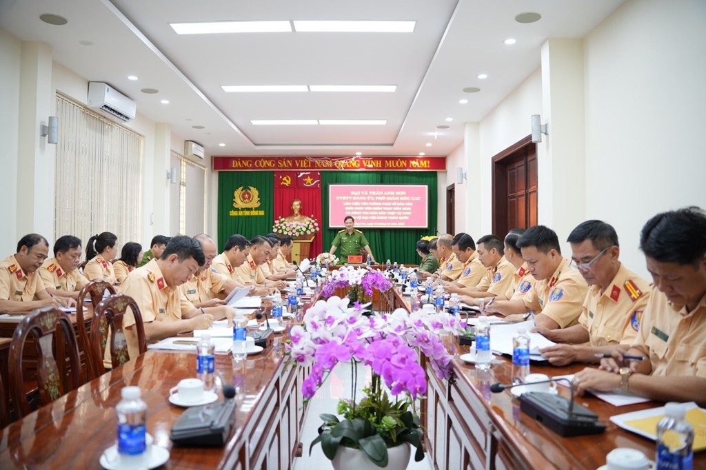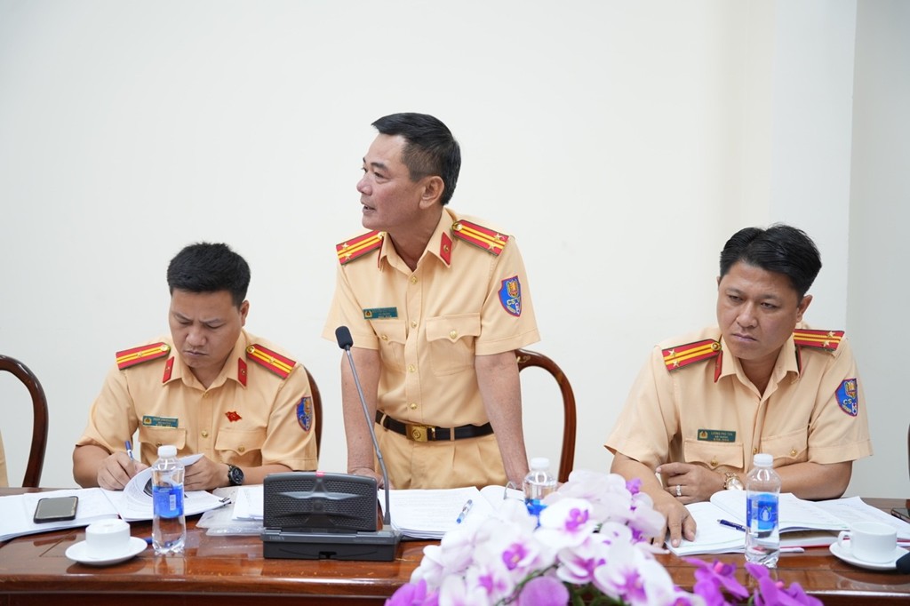 Phát biểu chỉ đạo buổi làm việc, Đại tá Trần Anh Sơn, Phó Giám đốc Công an tỉnh yêu cầu lực lượng CSGT tiếp tục huy động tối đa lực lượng tăng cường kiểm tra, xử lý vi phạm trật tự ATGT trên cả 3 tuyến đường bộ, đường thuỷ, đường sắt. Duy trì và thực hiện hiệu quả các chỉ đạo của Cục CSGT, Ban Giám đốc Công an tỉnh về thực hiện cao điểm tấn công, trấn áp tội phạm, bảo đảm trật tự ATGT phục vụ Đại hội đại biểu toàn quốc lần thứ XIV của Đảng, bầu cử đại biểu HĐND các cấp nhiệm kỳ 2026 – 2031 và bảo đảm an ninh trật tự Tết Nguyên đán Bính Ngọ năm 2026. Đồng chí Phó Giám đốc Công an tỉnh cũng đề nghị đơn vị nâng cao hiệu quả công tác phòng ngừa, làm tốt công tác tuyên truyền, lan toả hình ảnh đẹp về lực lượng trong tấn công trấn áp tội phạm, tạo khí thế mạnh mẽ trong đợt cao điểm.