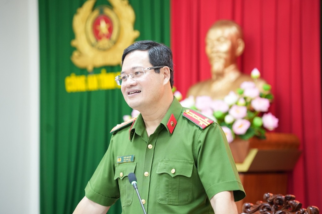 Đại tá Trần Anh Sơn, Phó Giám đốc Công an tỉnh phát biểu chỉ đạo buổi làm việc