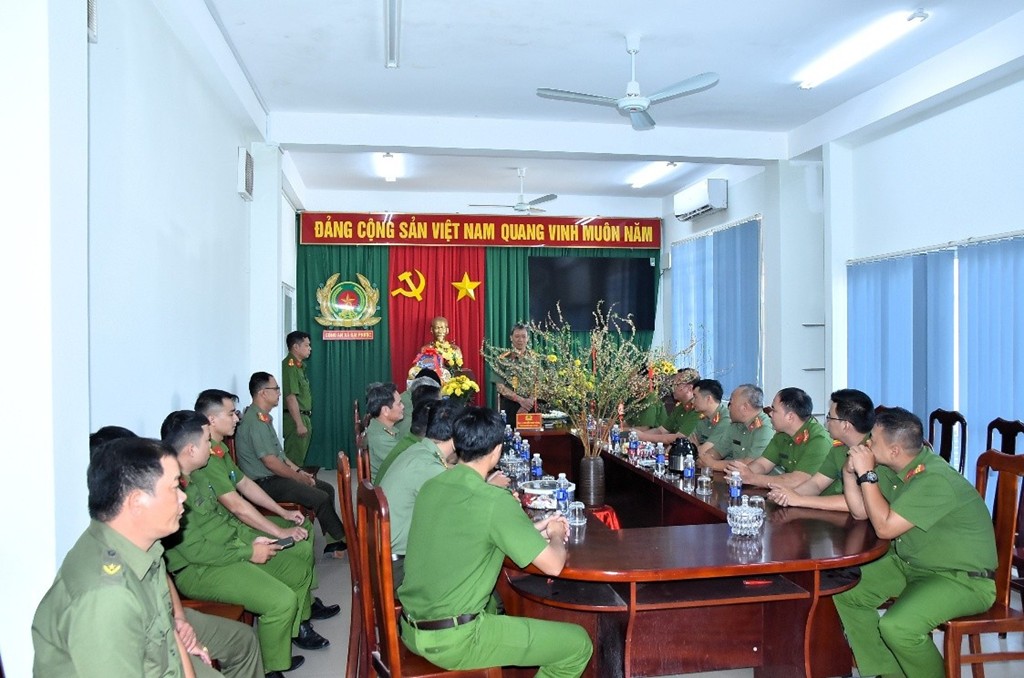 Đại tá Nguyễn Anh Hùng, Ủy viên Ban Thường vụ Đảng ủy, Phó Giám đốc Công an tỉnh đã đến thăm hỏi và chúc Tết Công an xã Đại Phước