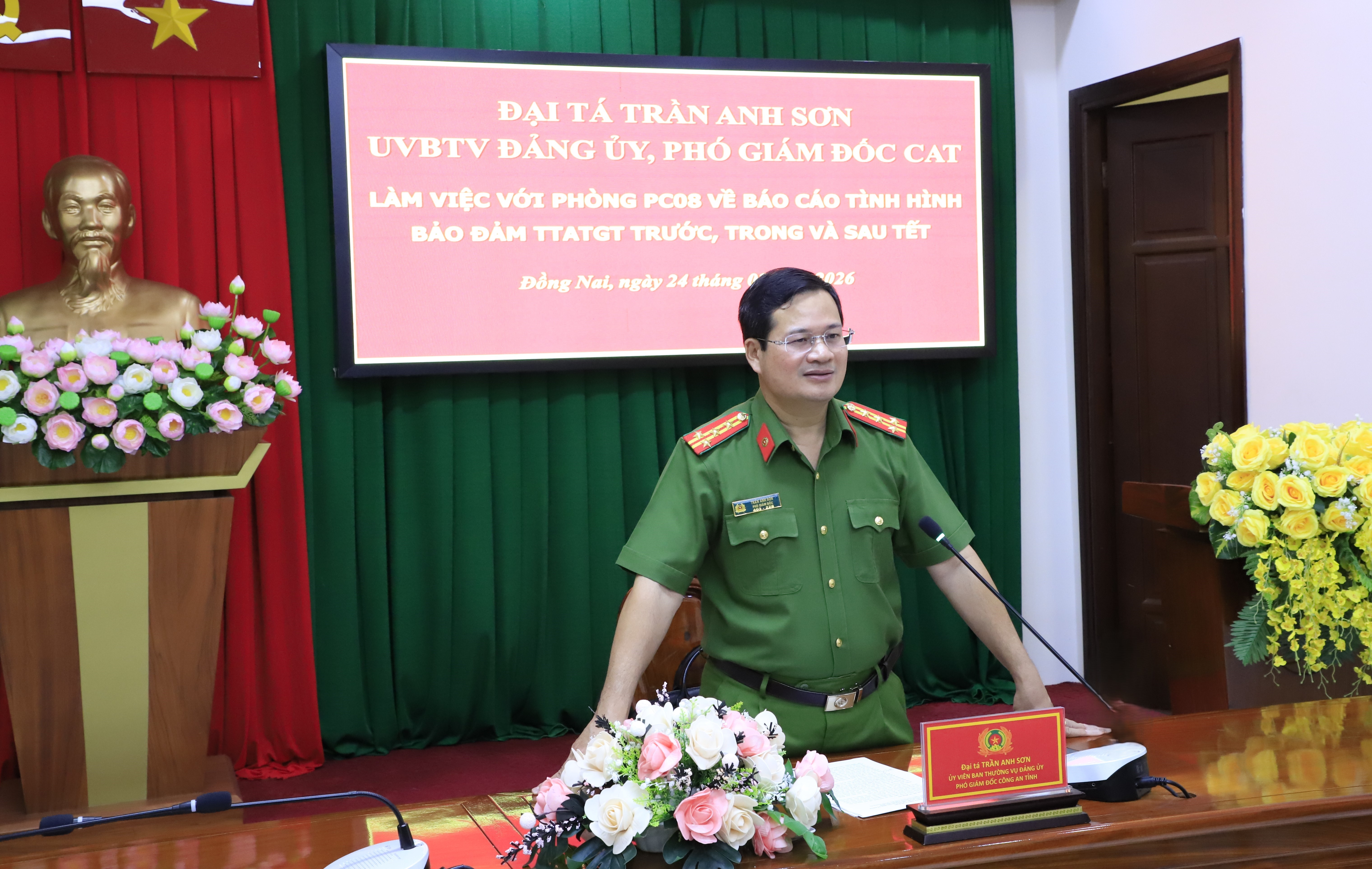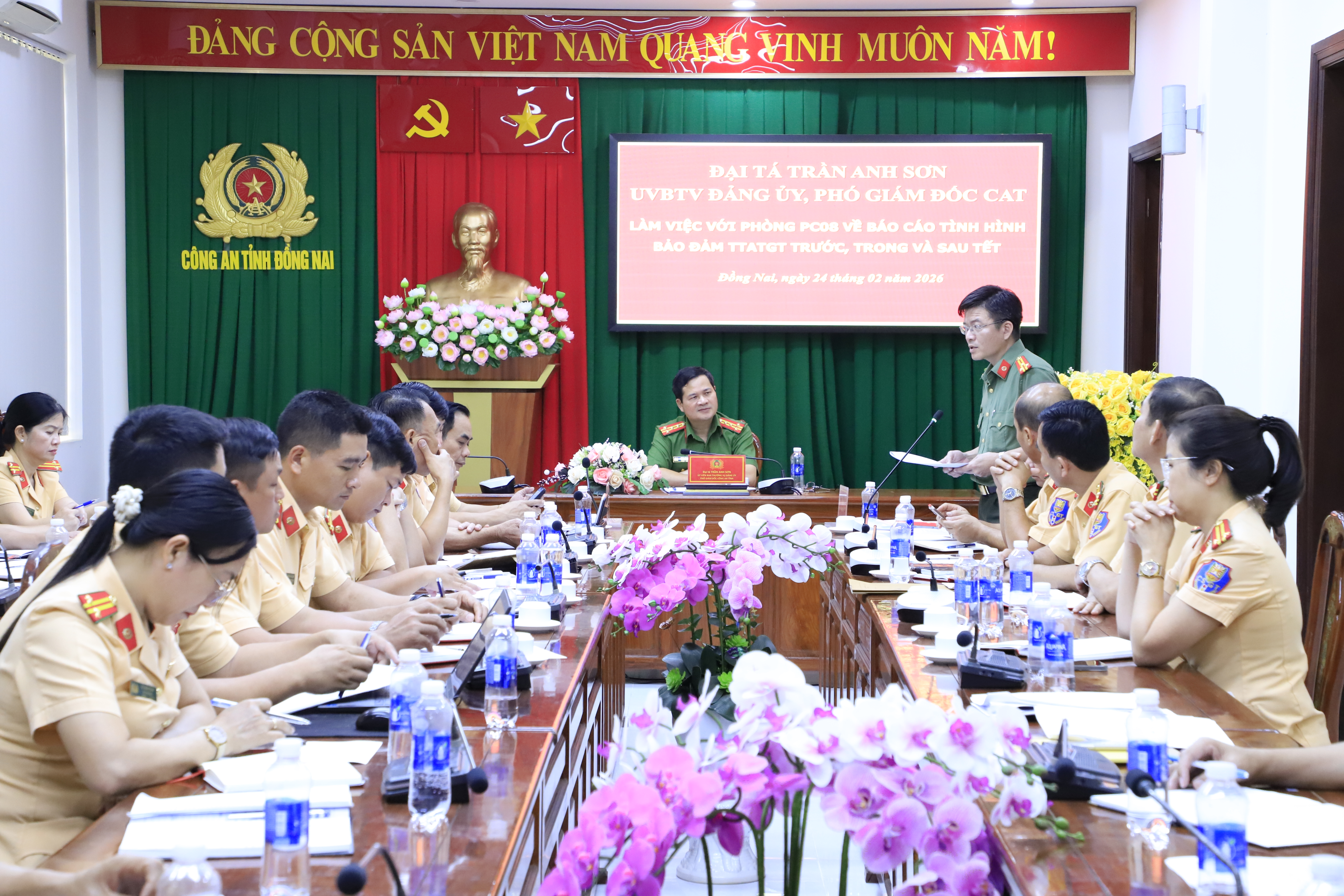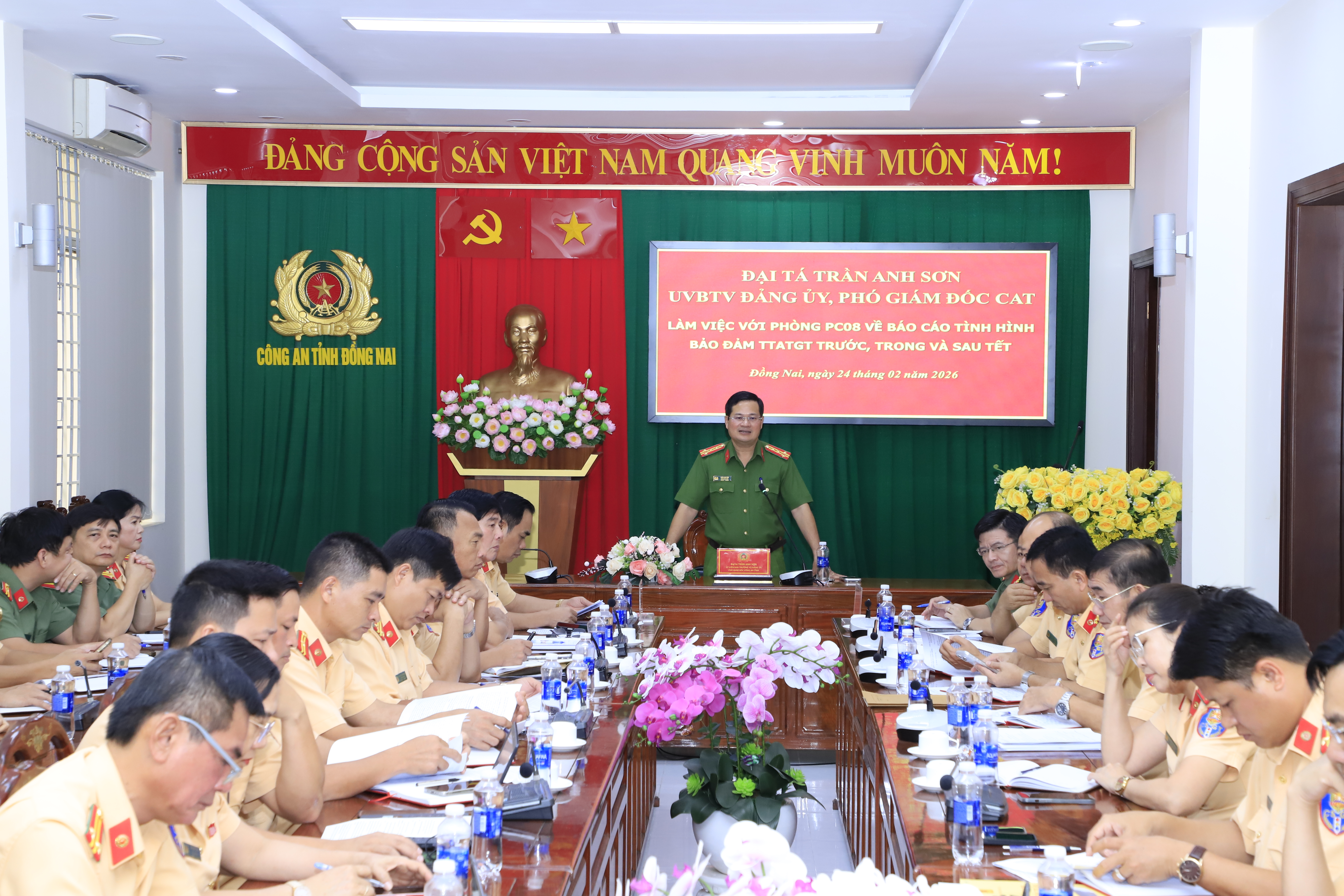 Chiều ngày 24/02, đồng chí Đại tá Trần Anh Sơn, Uỷ viên Ban Thường vụ Đảng uỷ, Phó Giám đốc Công an tỉnh đã làm việc với Phòng Cảnh sát giao thông (CSGT) Công an tỉnh về công tác bảo đảm trật tự an toàn giao thông (TT.ATGT) trước, trong và sau Tết. Cùng dự có đại diện lãnh đạo, chỉ huy và cán bộ Phòng Tham mưu Công an tỉnh.