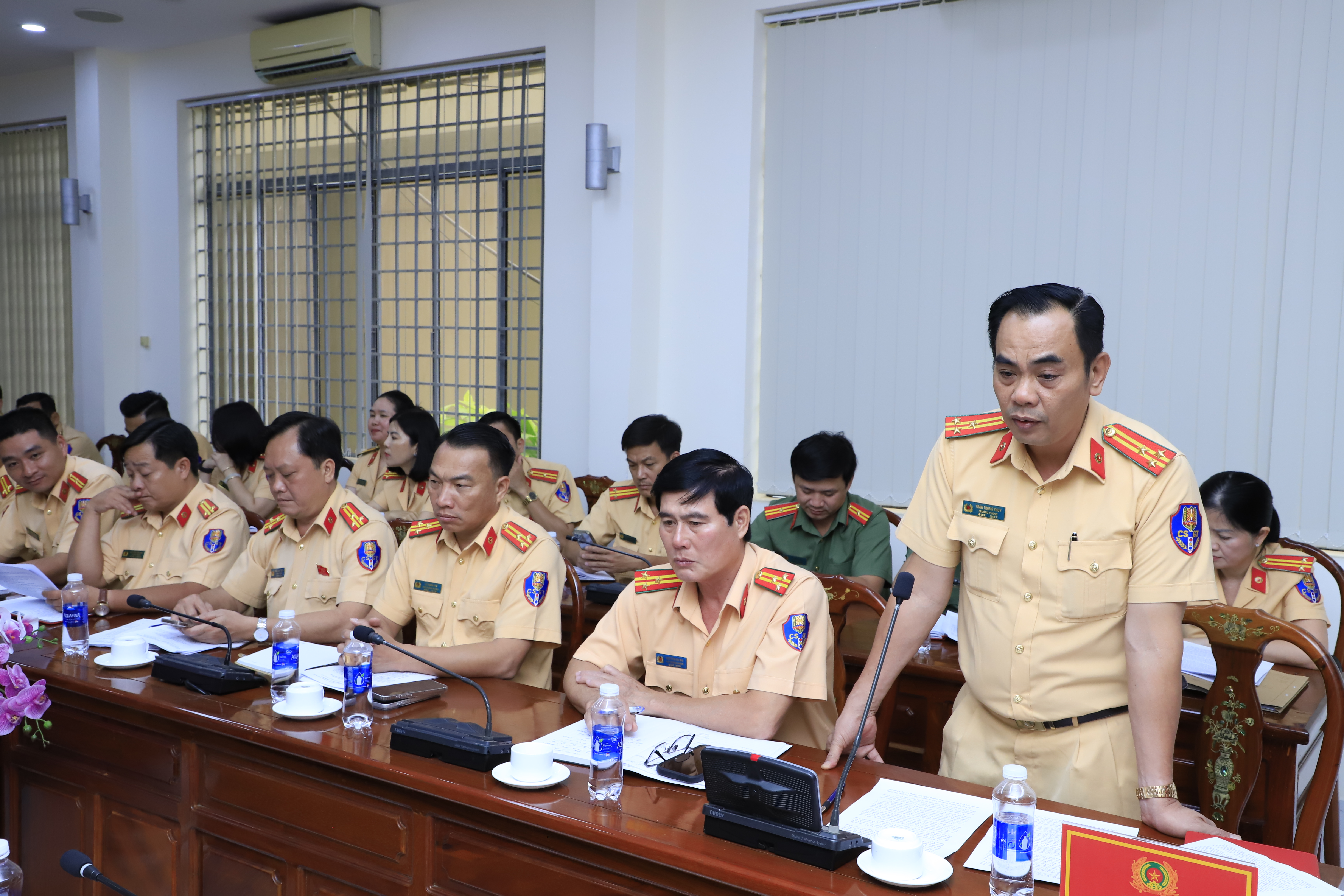 Thượng tá Trần Trọng Thuỷ, Trưởng Phòng CSGT (ảnh trên) và Thượng tá Trương Anh Đức, Phó trưởng Phòng Tham mưu Công an tỉnh (ảnh dưới) đề xuất, kiến nghị các giải pháp nâng cao hiệu quả công tác bảo đảm TT.ATGT thời gian tới