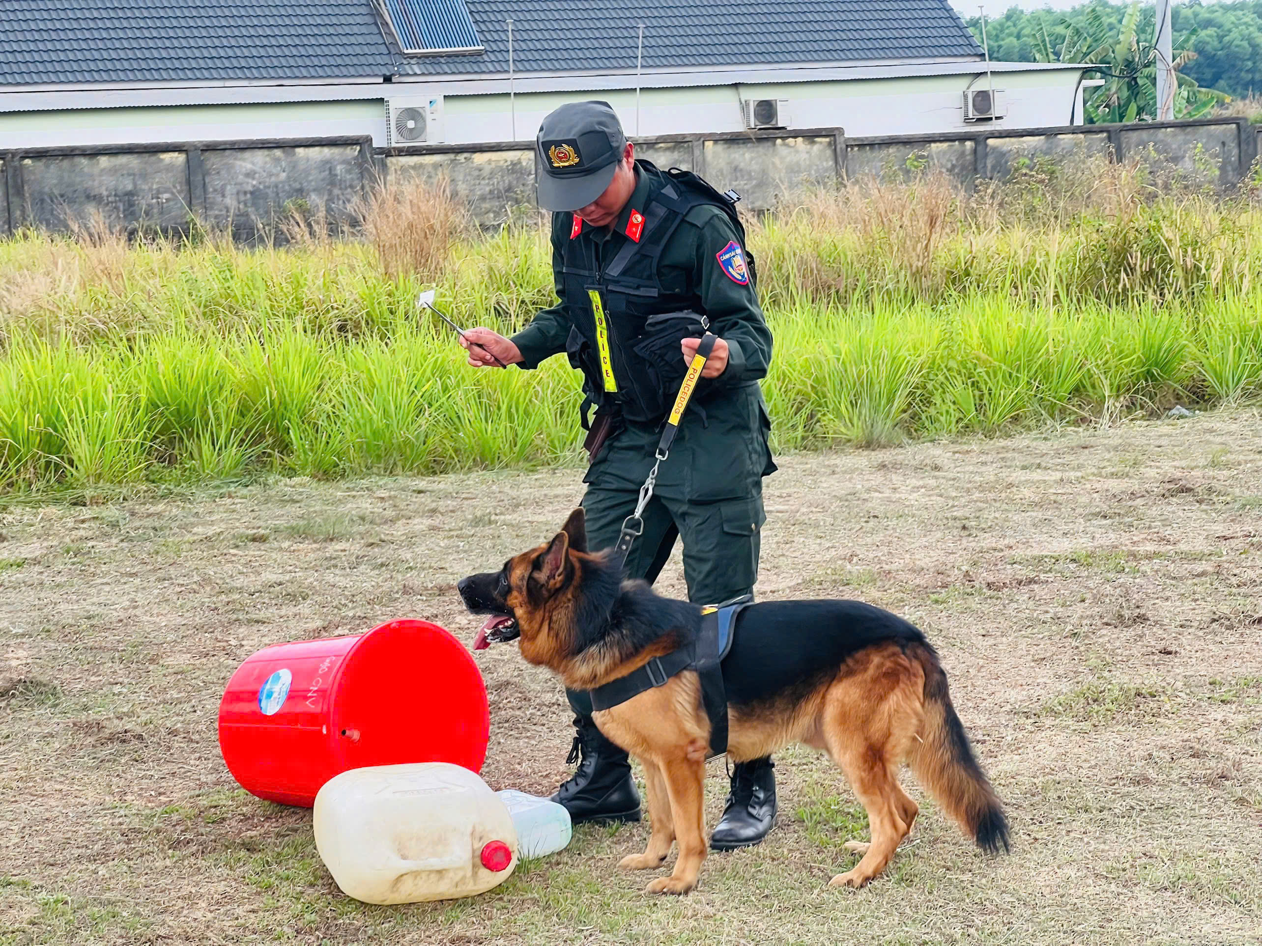 Lực lượng Cảnh sát cơ động biểu diễn tình huống và huấn luyện chó nghiệp tại Lễ ra quân