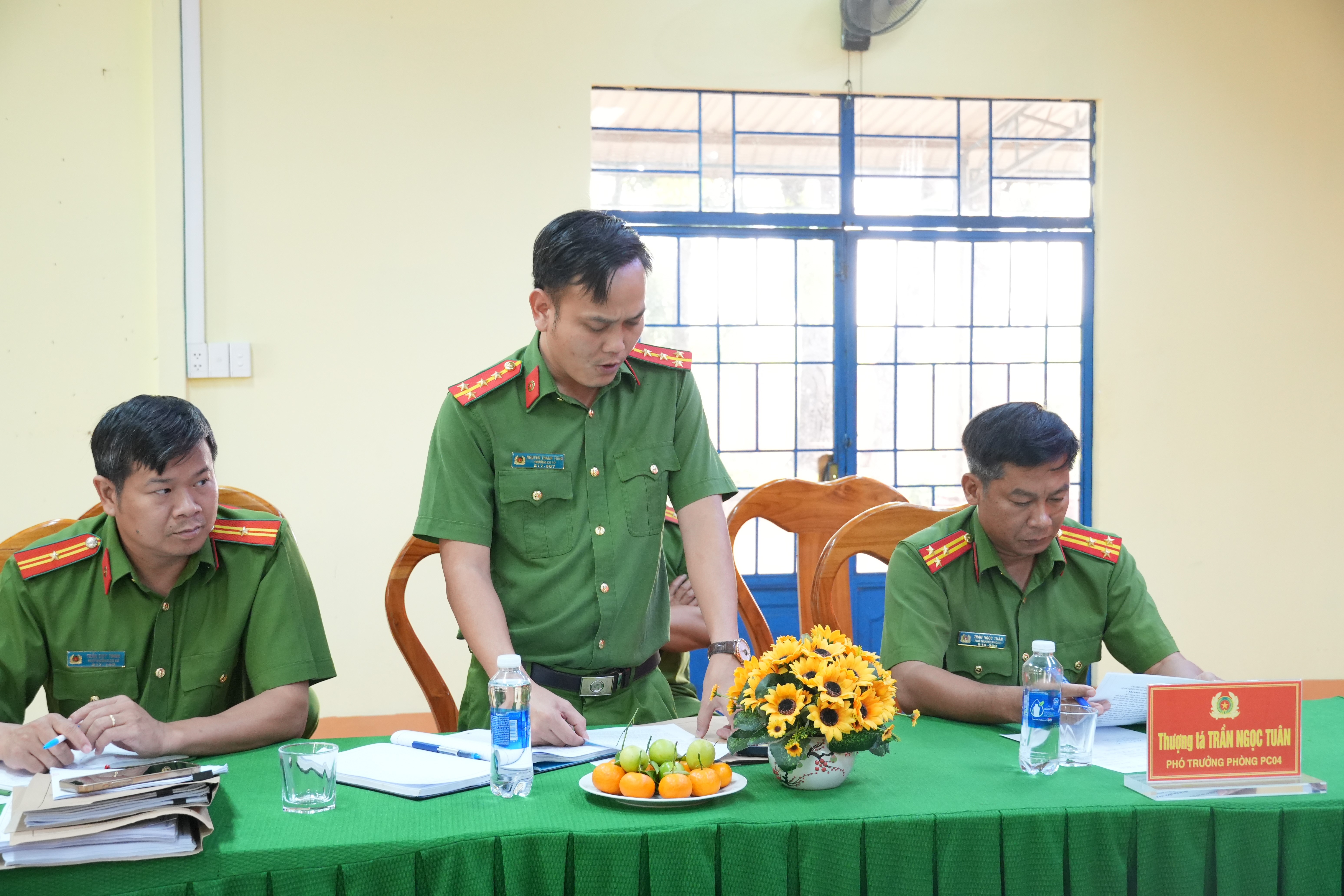 Đại diện các Cơ sở cai nghiện báo cáo với đoàn về công tác bảo đảm ANTT phục vụ bầu cử đại biểu Quốc hội khóa XVI và đại biểu HĐND các cấp