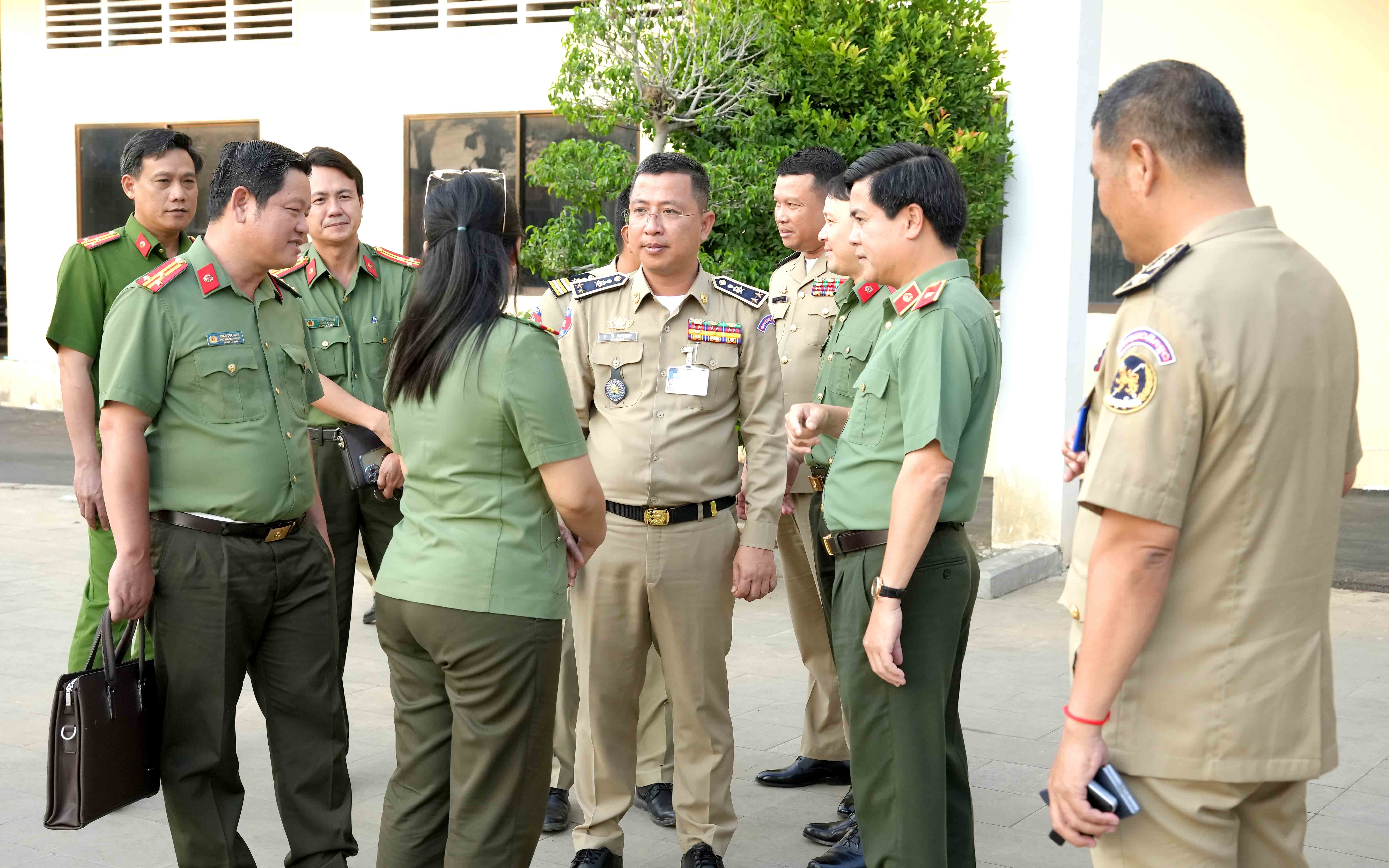 Trung tướng Ou Sobonna, Trưởng ty Công an tỉnh Kratie (đứng giữa), đón đoàn công tác Công an tỉnh Đồng Nai sang chúc Tết.