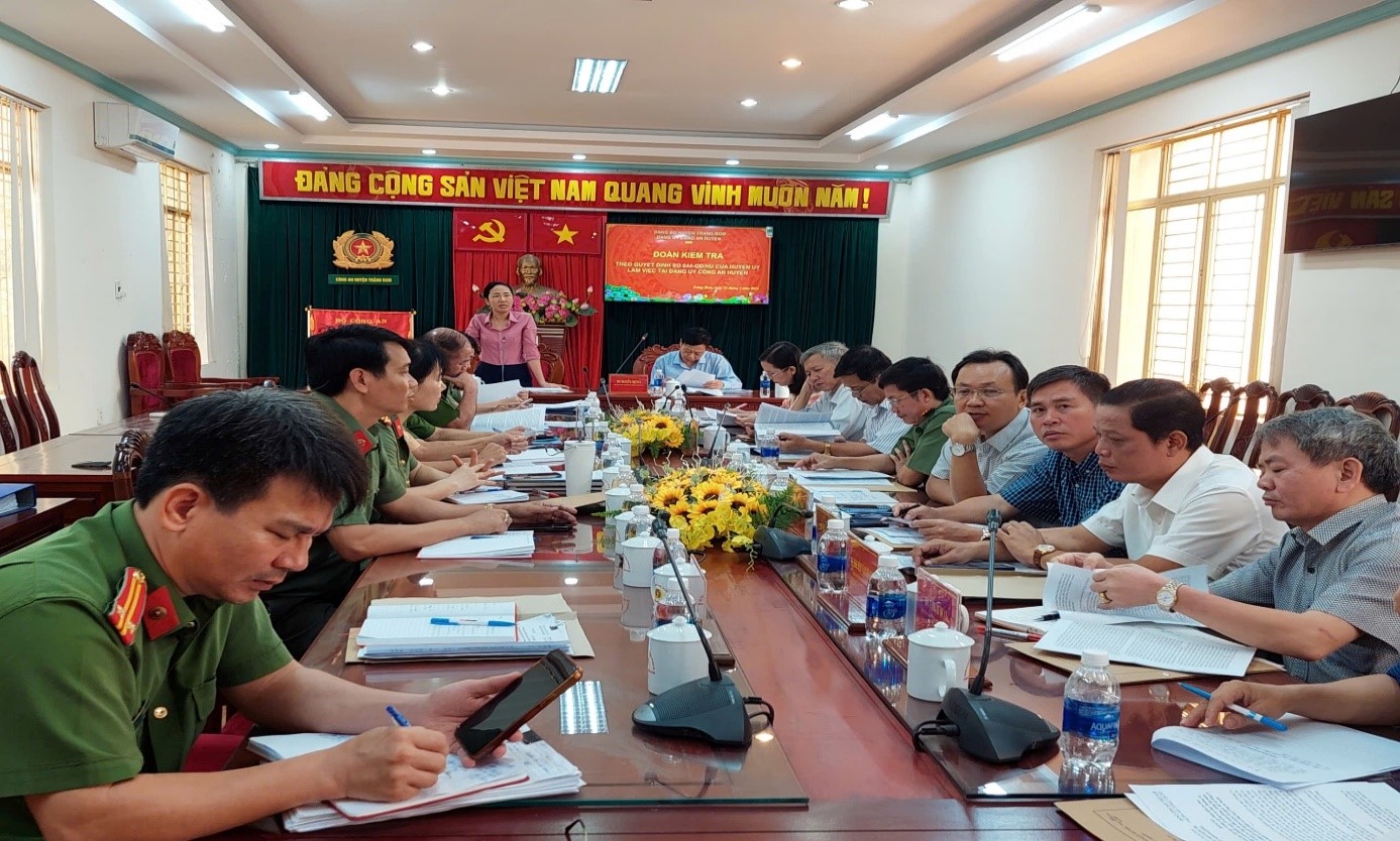 Đảng ủy Công an tỉnh chủ trì phối hợp cấp ủy địa phương kiểm tra đối với Đảng ủy Công an cấp huyện (cũ).