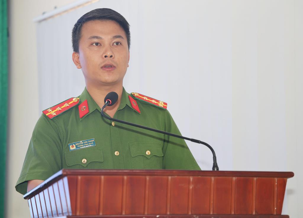 Đại uý Nguyễn Văn Thanh - Bí thư Đảng uỷ, Trưởng Công an xã tiếp thu ý kiến chỉ đạo của Lãnh đạo Đảng ủy xã