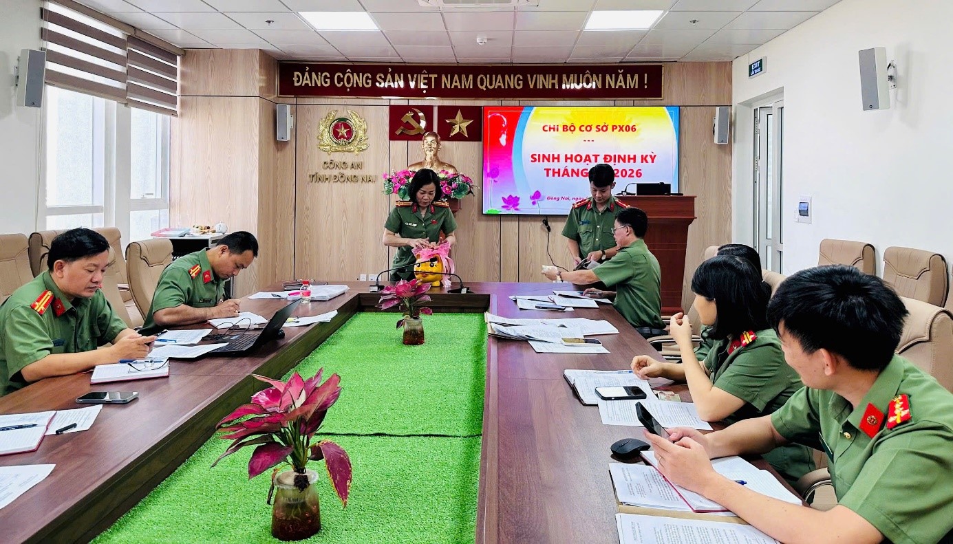 Đảng viên Chi bộ Cơ quan UBKT Đảng ủy Công an tỉnh thực hiện đóng đảng phí tại buổi sinh hoạt định kỳ hàng tháng