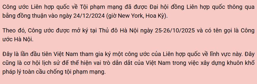 Phát biểu kết luận, Chủ tịch nước Lương Cường đánh giá đây là sự kiện đặc biệt quan trọng; mang ý nghĩa chính trị, đối ngoại sâu sắc; đánh dấu lần đầu tiên một Công ước đa phương toàn cầu trong một lĩnh vực đang được cộng đồng quốc tế hết sức quan tâm gắn với tên Thủ đô Hà Nội của Việt Nam.