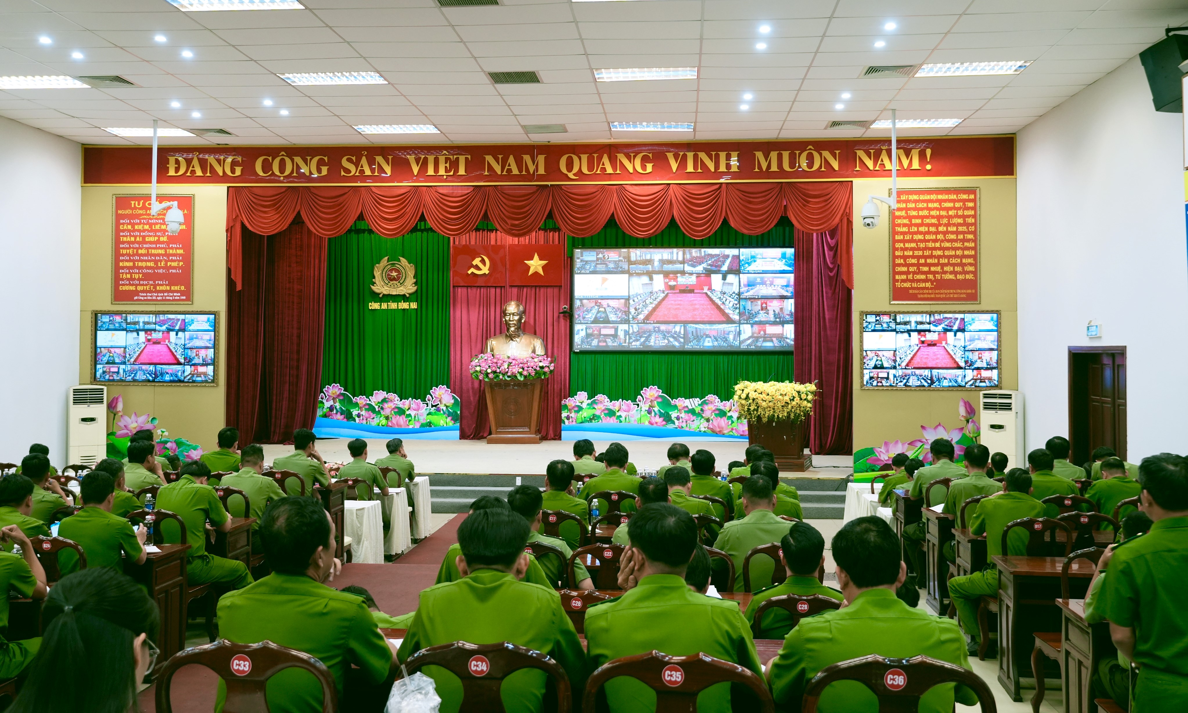 Đồng chí Đại tá Trần Anh Sơn, Phó Giám đốc Công an tỉnh chủ trì Hội nghị tại điểm cầu Công an Đồng Nai