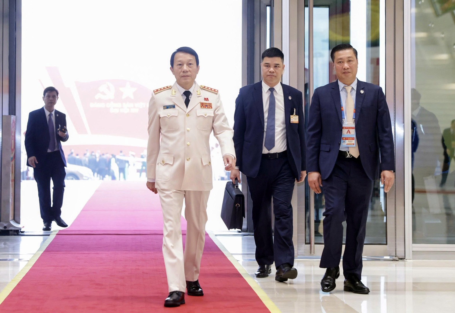 Đại tướng Lương Tam Quang, Uỷ viên Bộ Chính trị, Bí thư Đảng uỷ Công an Trung ương, Bộ trưởng Bộ Công an tới dự phiên khai mạc trọng thể Đại hội XIV của Đảng.