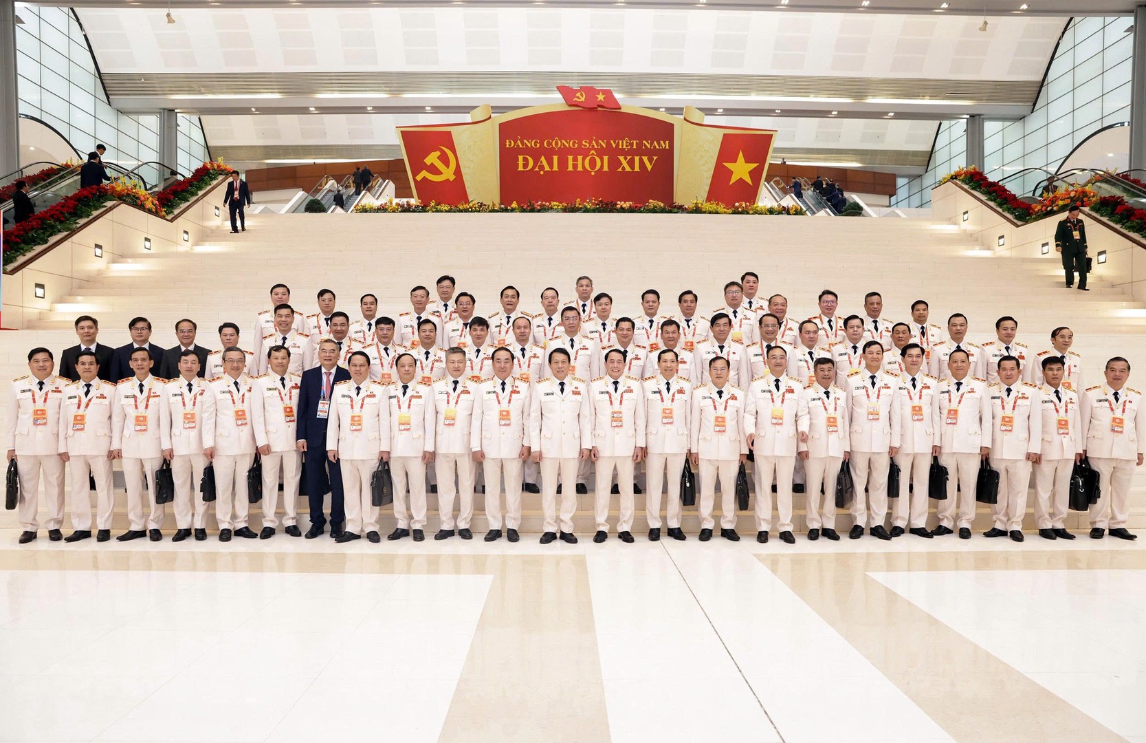 Sáng nay (20/1), Đại hội XIV của Đảng khai mạc trọng thể tại Hà Nội với sự tham dự của 1.586 đại biểu, đại diện hơn 5,6 triệu đảng viên. Đại hội cũng vinh dự đón các đồng chí lãnh đạo, nguyên lãnh đạo Đảng và Nhà nước cùng các đại diện nhân sĩ, trí thức, nghệ sĩ, chức sắc tôn giáo và thanh niên tiêu biểu trên mọi miền đất nước đến dự... Đoàn đại biểu Đảng bộ Công an Trung ương dự Đại hội XIV gồm hơn 30 đồng chí. Trước khi vào phiên khai mạc, Chủ tịch Quốc hội Trần Thanh Mẫn cùng đoàn đại biểu Đảng bộ Công an Trung ương và các đại biểu chụp ảnh lưu niệm bên ngoài hội trường.