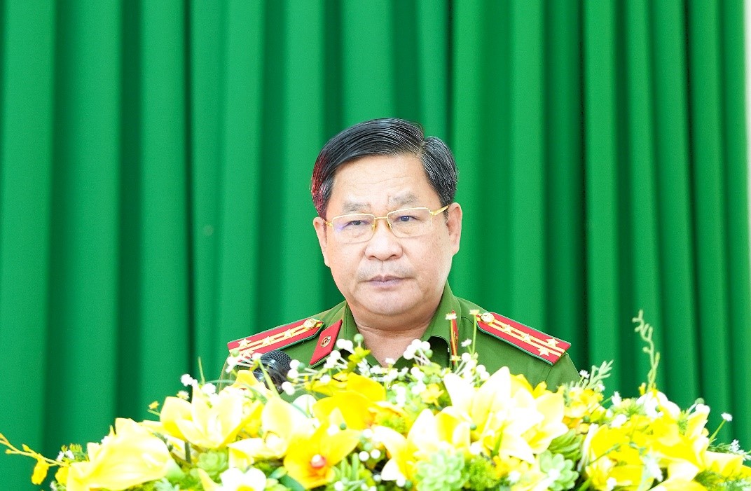 Đồng chí Đại tá Lâm Văn Long -Phó Giám đốc Công an tỉnh phát biểu chỉ đạo tại Lễ khai giảng